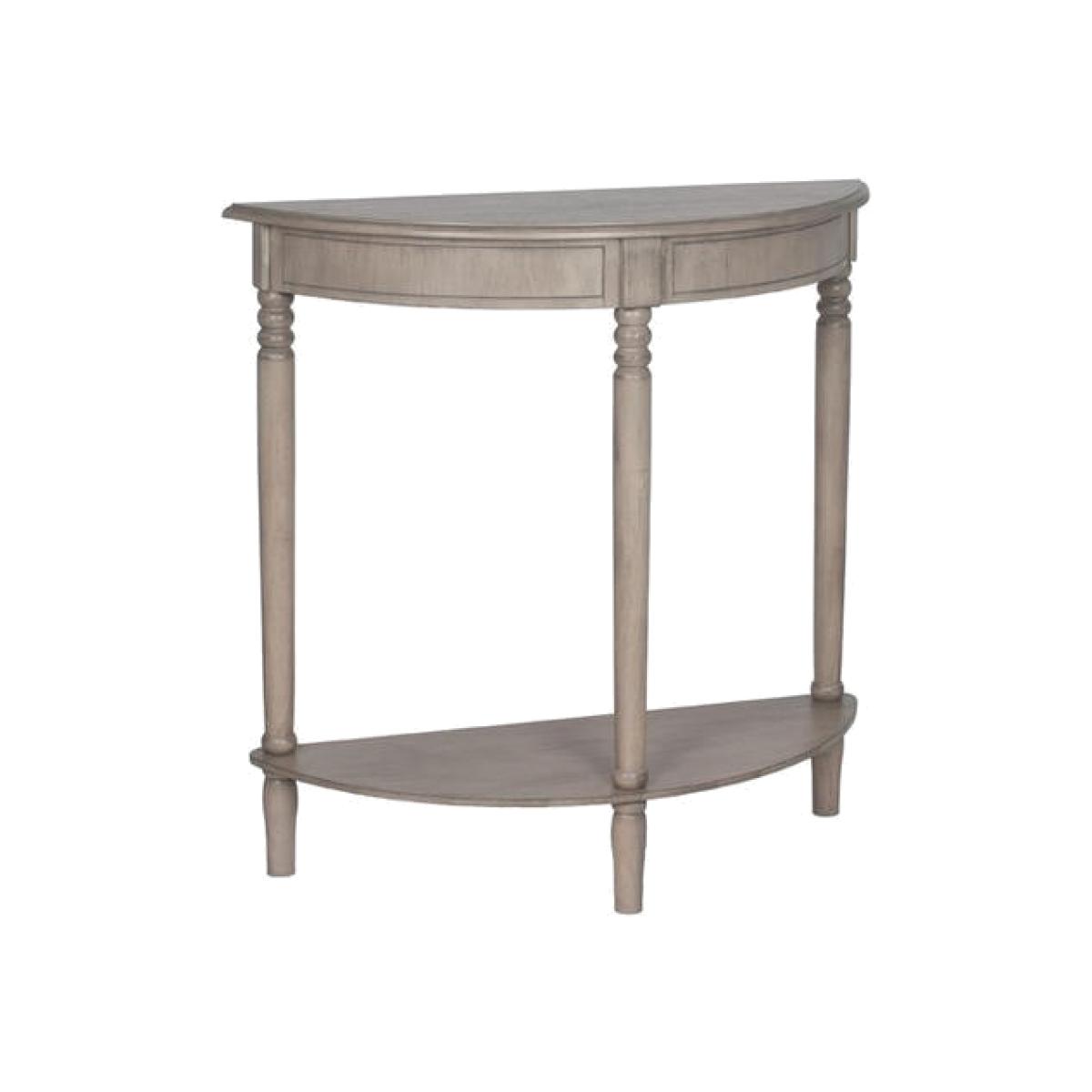 Features we love The elegant design adds a sophisticated touch to any home The pine finish brings out the character of the wood, giving it a timeless appeal Narrow design allows you to position it anywhere and save on space Unique half moon shape and an exposed lower shelf for hallway essentials Matching items available All about me In beautiful taupe finish pine wood, this half moon console table is a design that will stand the test of time with the added detail of timeless louvre doors. This piece sits beautifully within our Ashwell collection alongside other furniture pieces within this range. Need to know Dimensions: W80 x D30 x H80 cm Colour: Cream Finish: Pine Material: Wood Assembly required: Yes