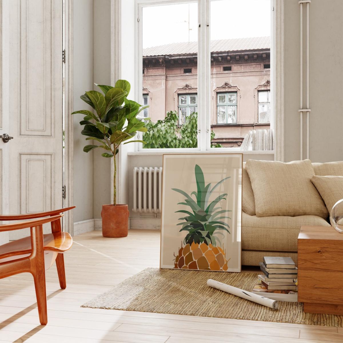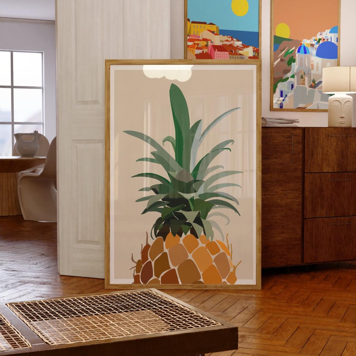 Pineapple Art Print - A2 Introducing our pineapple print, a chic and stylish addition to any modern space. Featuring a minimalist design, this print adds a touch of sophistication to your walls or a perfect gift for a foodie. All prints are digitally designed by myself and printed to order. Smooth fine art 230 gsm matte card. Printed with vivid colour and detail. Sold without a frame.