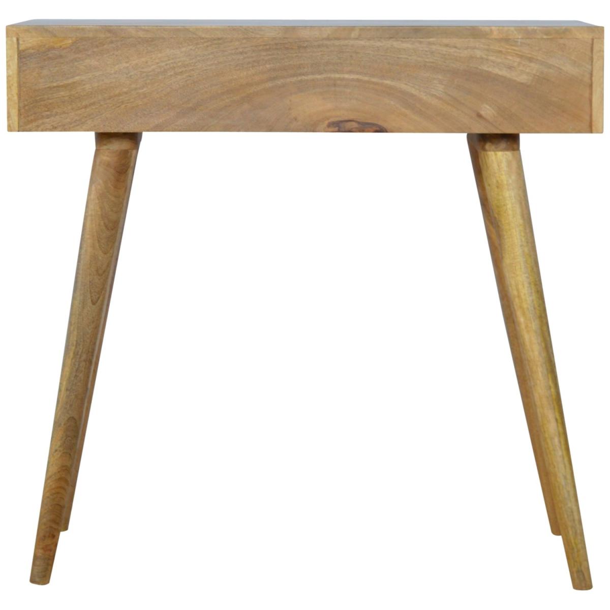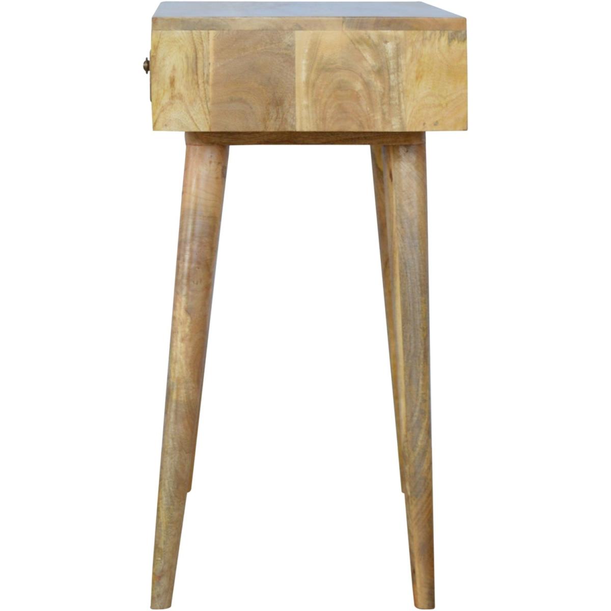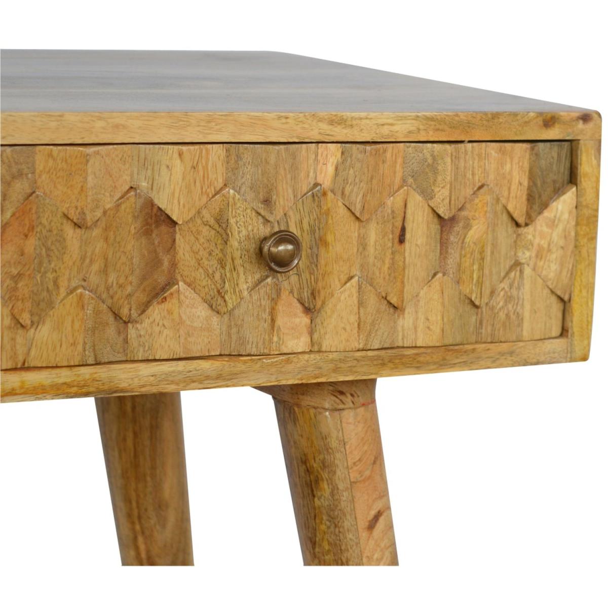 Add this console table to your hallway, living room, or bedroom. Standing on 4 Nordic style legs it features 2 spacious drawers which each have 1 shiny knob. This is a very stylish and versatile piece that features a hand-carved pineapple design on the wood which can match any style of interior and could go nicely with a variety of different colours and finishes. This piece can stand alone or can be completed with the matching collection.