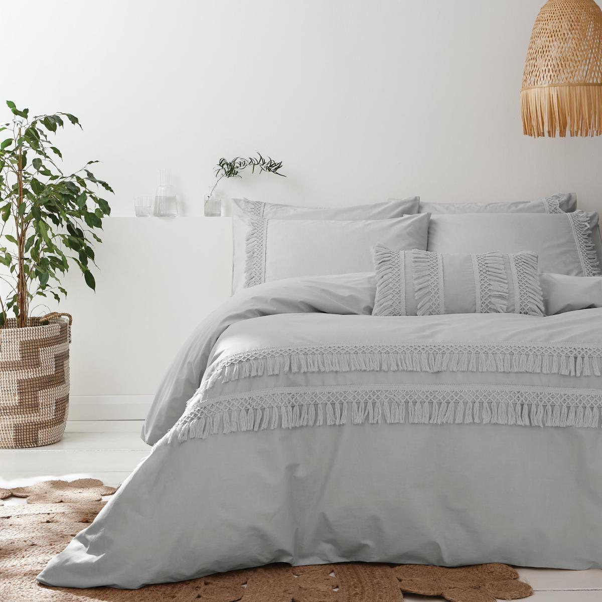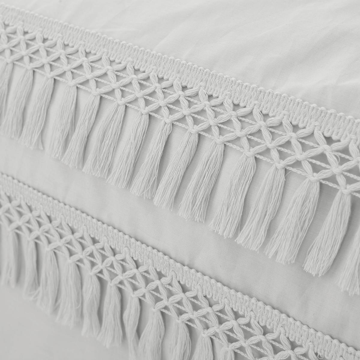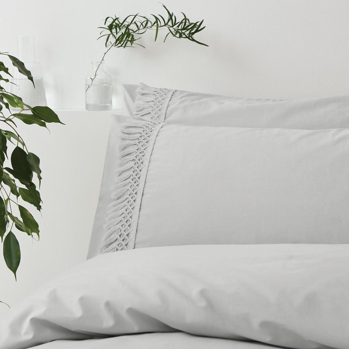 This inspired collection of eclectic designs are a fusion of influences from across the world, with a modern interpretation of artisan motifs and timeless textures. Influenced from decorative Persian carpets, the textural tassel fringe detailing, natural tone and soft to touch Cotton base, create a peaceful sleeping sanctuary. Ethically sourced overseas and made to quality and human-ecological safety standards, in accordance with STANDARD 100 by OEKO-TEX®, this set has been crafted from luxurious 100% cotton. Matching cushion available, search 'Pineapple Elephant Izmir Cotton Tassel' to see the full collection.