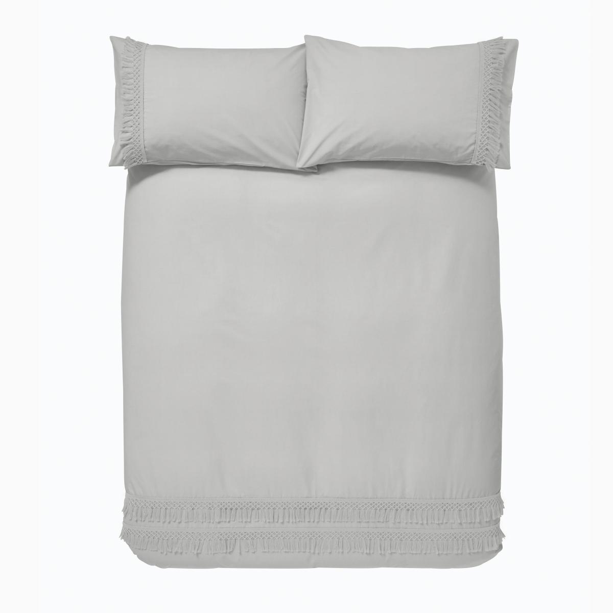 Pineapple Elephant Izmir Cotton Tassel Silver Duvet Cover and Pillowcase Set Silver