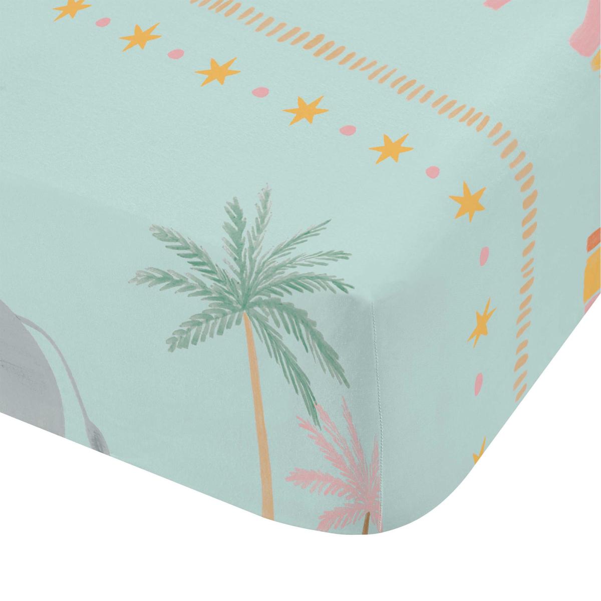 Pineapple Elephant Paradise Desert Animals Fitted Sheet Pastel (Multi Coloured)