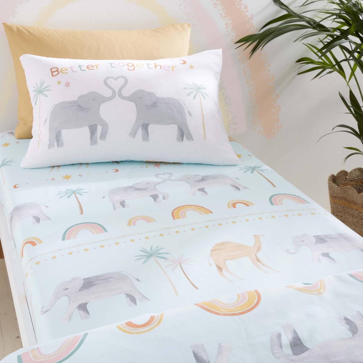 I really like this fun animal-themed fitted sheet - it’s a playful yet contemporary choice for children's bedrooms. Its pastel palette makes it versatile, softening the overall look while adding a splash of colour. This sheet works well in centres with a boho or Scandinavian aesthetic, where simple, gentle patterns are key. For styling, try pairing with solid-coloured bedding in muted or coordinating shades to let the print stand out without overwhelming the space. It's also great for adding a cheerful vibe without fuss - perfect for a nursery or a kids’ room that prioritises comfort and a touch of whimsy.