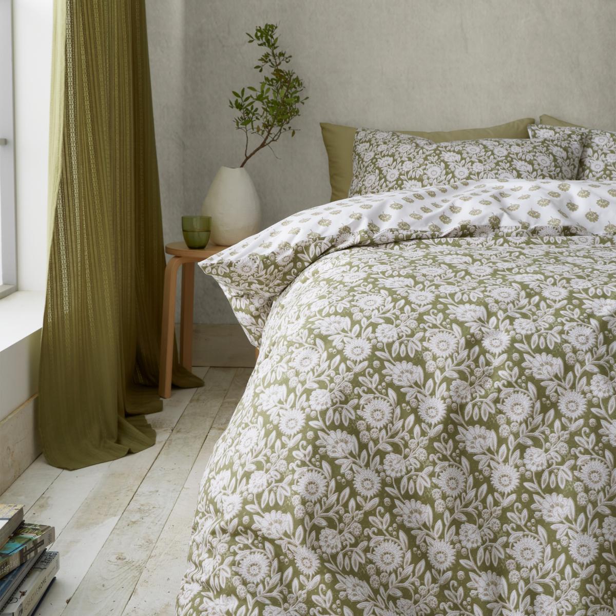 Experience the enchanting allure of Moroccan-inspired floral motifs woven with grace and intricacy in tthe Pineapple Elephant Tangier Floral Duvet Cover Set. Transport yourself to a world of exotic beauty and rich cultural heritage as you adorn your space with this timeless piece. In soothing olive green tones, this bedlinen exudes a serene ambiance, reminiscent of verdant gardens, fostering a sense of calm and tranquility in your bedroom sanctuary. Crafted with utmost care, this bedlinen is made from a blend of recycled polyester and responsibly sourced cotton, ensuring both environmental sustainability and luxurious comfort. Indulge in everyday opulence as you wrap yourself in the softness of this eco-conscious creation. Features 52% Recycled Polyester 48% Cotton 138 Thread Count: Fully Reversible Button Fastening: Single Duvet Includes Single Pillowcase Double, King and Superking Size Duvet Set Includes Pair of Pillowcases Care Instructions Wash Before Use. Machine Wash at 40 Degrees. Tumble Dry Safe. Please note All screens vary in colour reproduction and whilst every effort has been made to display the colour as accurately as possible it is for guidance only.