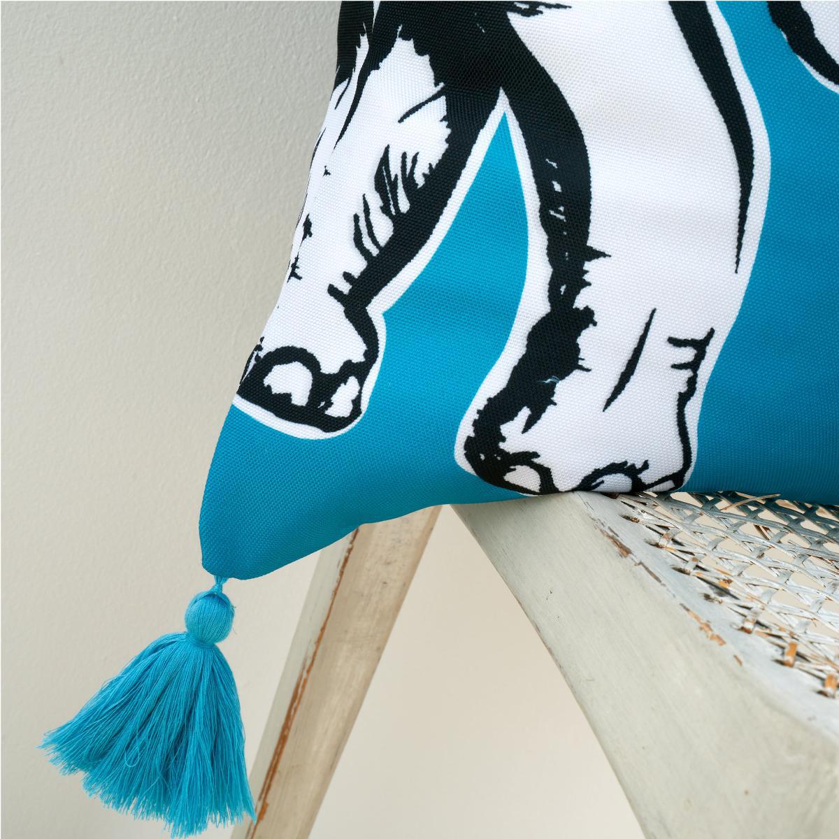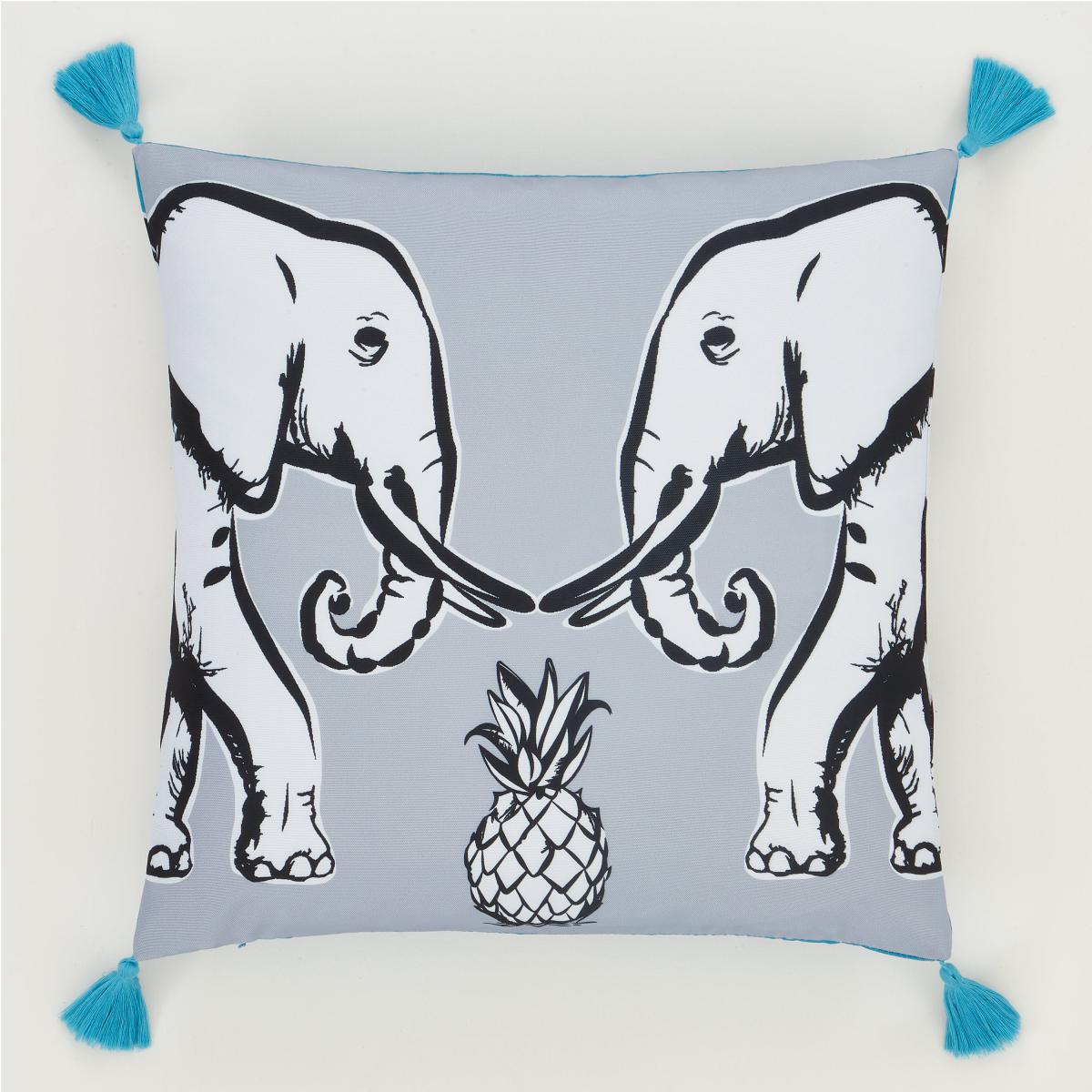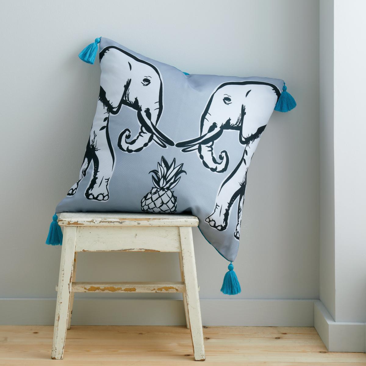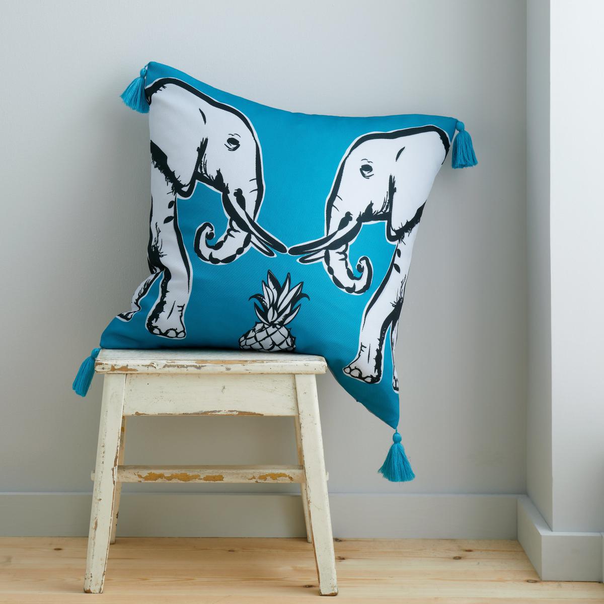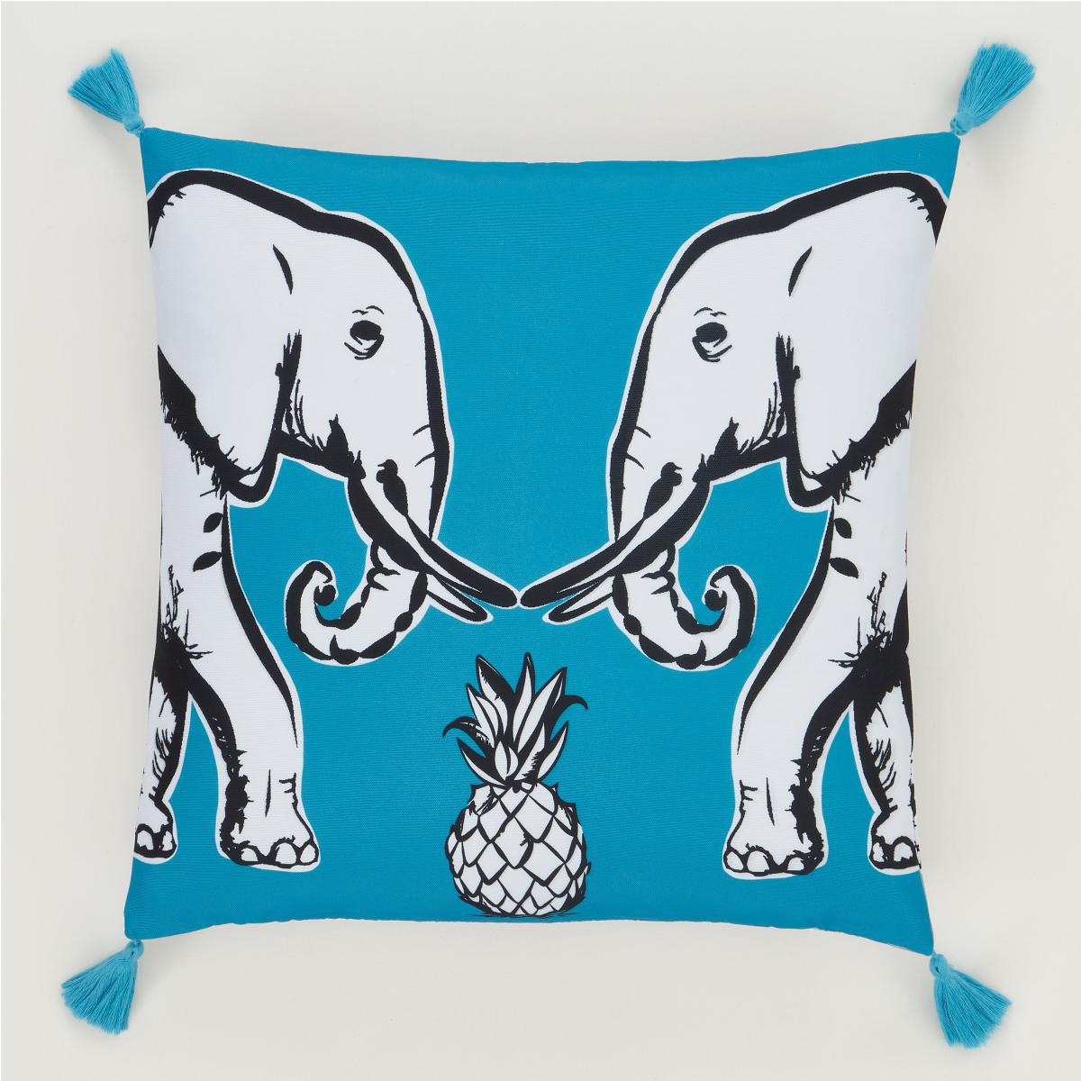 Pineapple Elephant Tembo Tassel Cushion Teal (Blue)