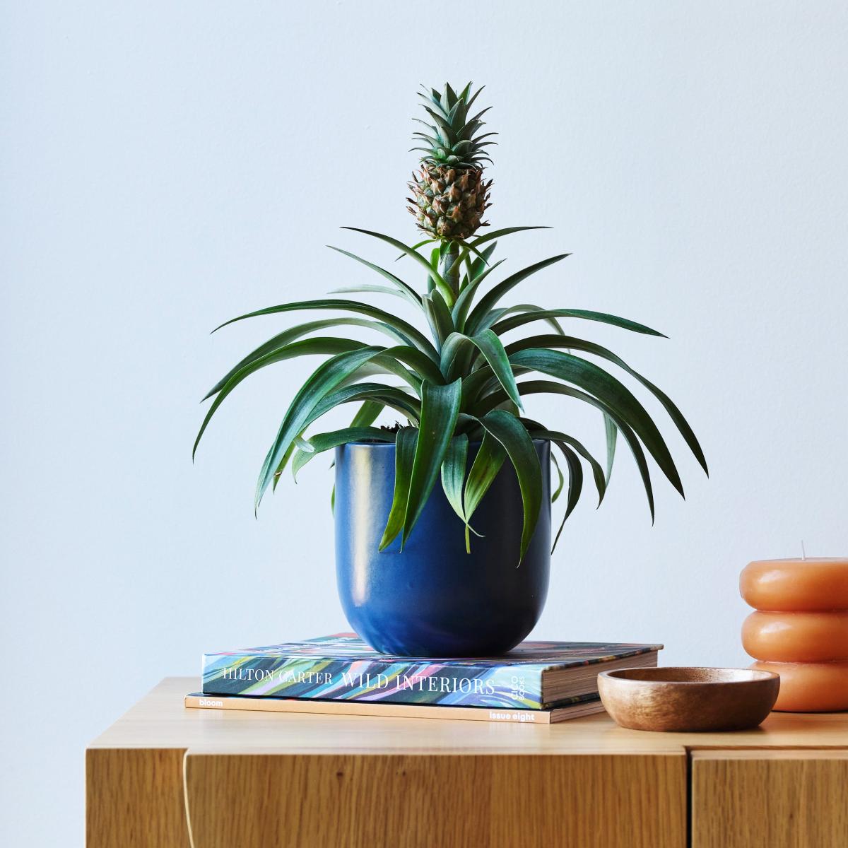 Houseplants don’t come more fun than the Pineapple Plant! With lovely lush, green, spiky leaves and a miniature pineapple nestling in the middle - it’s a must have for any plant lover. Part of the Bromeliad family, these plants are native to Brazil but are grown in tropical regions across the globe where they’re cultivated for their delicious fruit. This tropical beauty is surprisingly easy to care for, it loves plenty of bright light but be careful of too much direct light, as that can scorch its leaves. Paired with a handmade, perfectly-fitting coloured earthenware pot. How to keep me happy: Please note: As this is a living product your plant may vary to the one photographed. Plant height measurement includes the pot. Width measurement is for the width of the pot only; width of the plant may vary. Please note, unfortunately we cannot deliver this item to Northern Ireland or the Channel Islands.