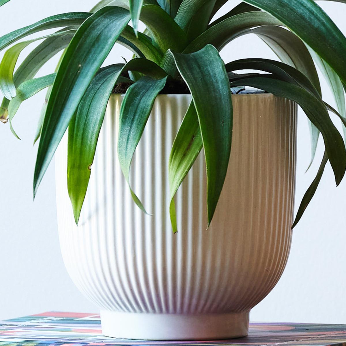 Houseplants don’t come more fun than the Pineapple Plant! With lovely lush, green, spiky leaves and a miniature pineapple nestling in the middle - it’s a must have for any plant lover. Part of the Bromeliad family, these plants are native to Brazil but are grown in tropical regions across the globe where they’re cultivated for their delicious fruit. This tropical beauty is surprisingly easy to care for, it loves plenty of bright light but be careful of too much direct light, as that can scorch its leaves. Paired with a ribbed, perfectly-fitting ceramic pot. How to keep me happy: Please note: As this is a living product your plant may vary to the one photographed. Plant height measurement includes the pot. Width measurement is for the width of the pot only; width of the plant may vary. Please note, unfortunately we cannot deliver this item to Northern Ireland or the Channel Islands.