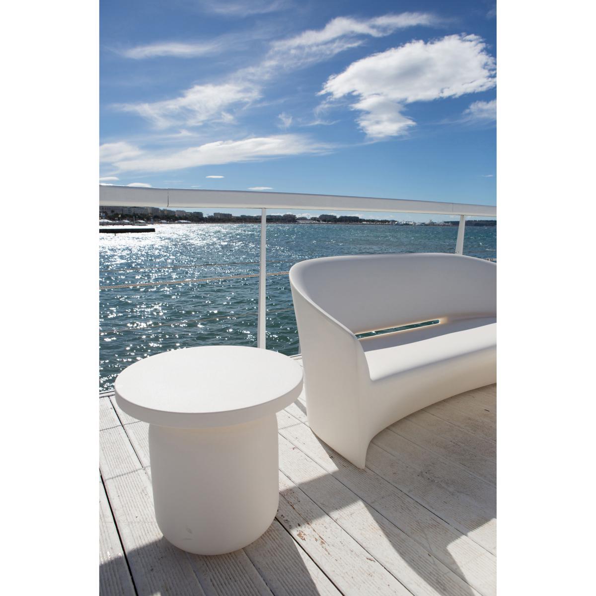 Designed by French designer Christophe Pillet, the Pine Beach line is inspired on the seashore, with its soft shapes. A rounded, embracing 3-seat sofa that follows the human body's ergonomic shape, with a soft and futuristic line. Suitable for indoor or outdoor areas. Thanks to its drain hole for water, it is possible to sit even after heavy rain.