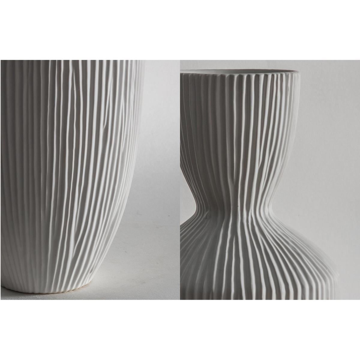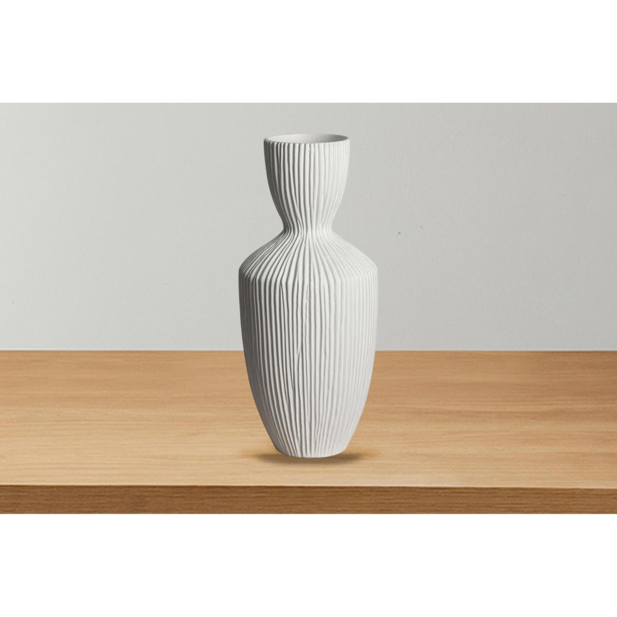 I love this vase for its sleek, textured design which adds visual interest without overwhelming a space. Its tall, sculptural form makes it ideal as a statement piece on a console table, sideboard, or mantel. It's particularly well-suited to modern, contemporary, or minimalist interiors, but can also work beautifully in a Scandinavian-inspired scheme. Practical styling tips include pairing it with fresh or dried flowers for colour and texture, or leaving it empty as a standalone sculptural accent. Its neutral white finish makes it versatile enough to blend seamlessly with various colour palettes, making it a reliable choice for elevating any room.