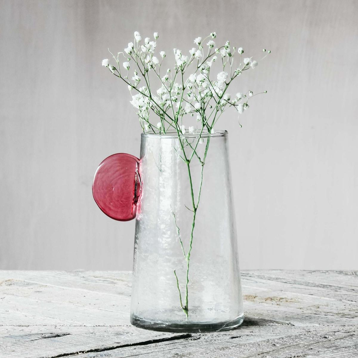 I love this pink and clear recycled glass vase for its blend of colour and sustainability. Its soft pink side adds a subtle touch of colour, making it a versatile piece that works well in both modern and rustic interiors. It’s great for displaying simple, delicate flowers like wildflowers or small blooms, and its height makes it ideal for centrepieces or bedside tables. When styling, consider layering it with other textured or coloured items to enhance its visual interest, or keep it minimal for a clean, contemporary look. Because it’s recycled glass, it also offers an eco-conscious choice for those looking to bring a touch of elegance and sustainability into their space.