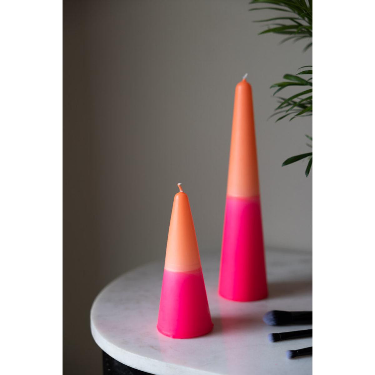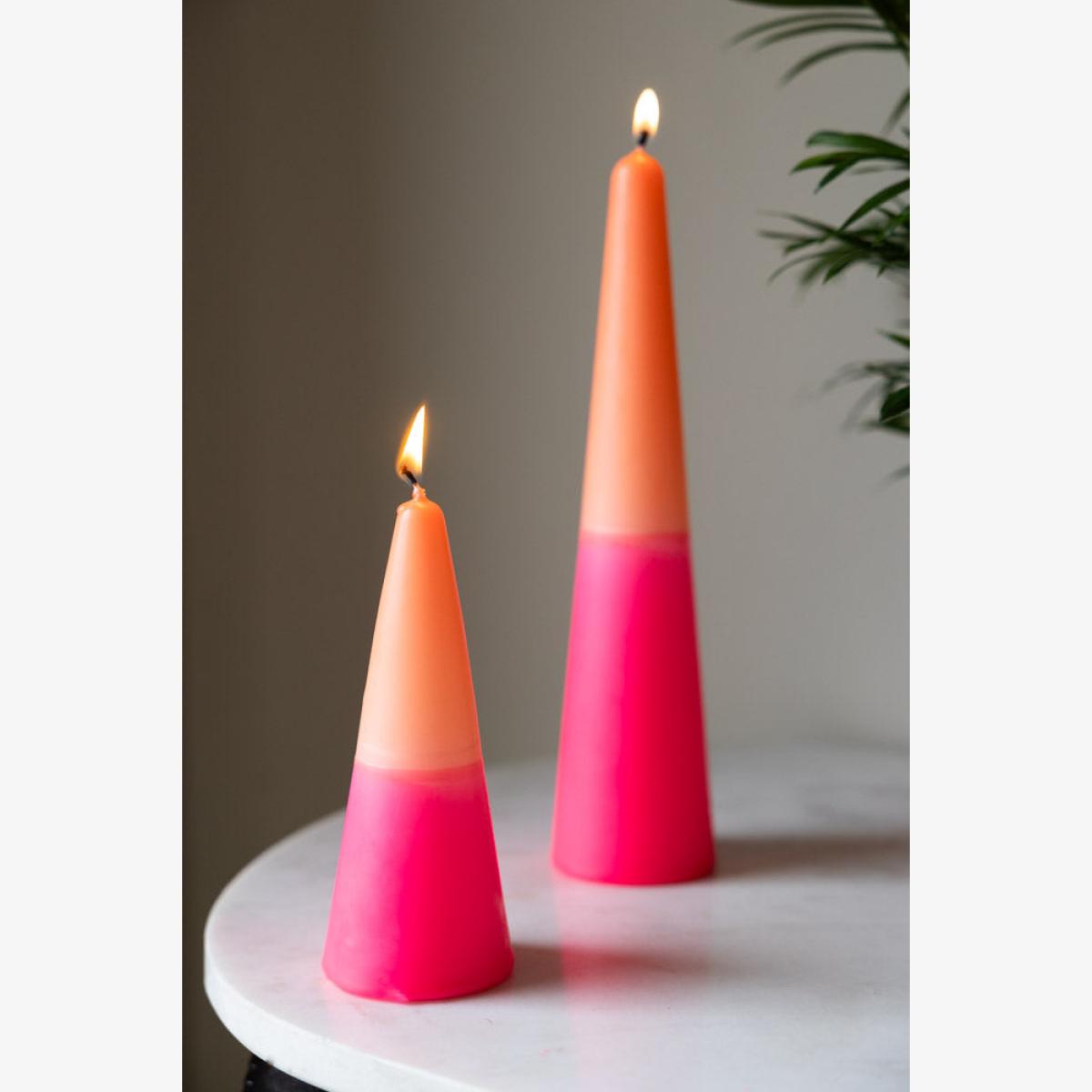 Nothing creates a cosy atmosphere like candlelight, and we’re head over heels for these two-tone beauties. A riot of sunset hues in pink and orange, these add a pleasing pop of colour and personality to your space, whether you’re hosting a special soiree or simply kicking back and chilling in the casa in glorious solitude! The beauty of the cone design means these candles look more characterful as they burn, with the melted wax creating a pretty aesthetic of flowing droplets that adds authenticity and a rustic feel. Just gorgeous.- Pink & Orange Cone-Shaped Candle - Material: Wax - 2 sizes available: Large - H25cm x W6cm; Small - H15cm x W6cm- Safety first: Never leave a burning candle unattended, around young children or pets and do not burn near flammable materials