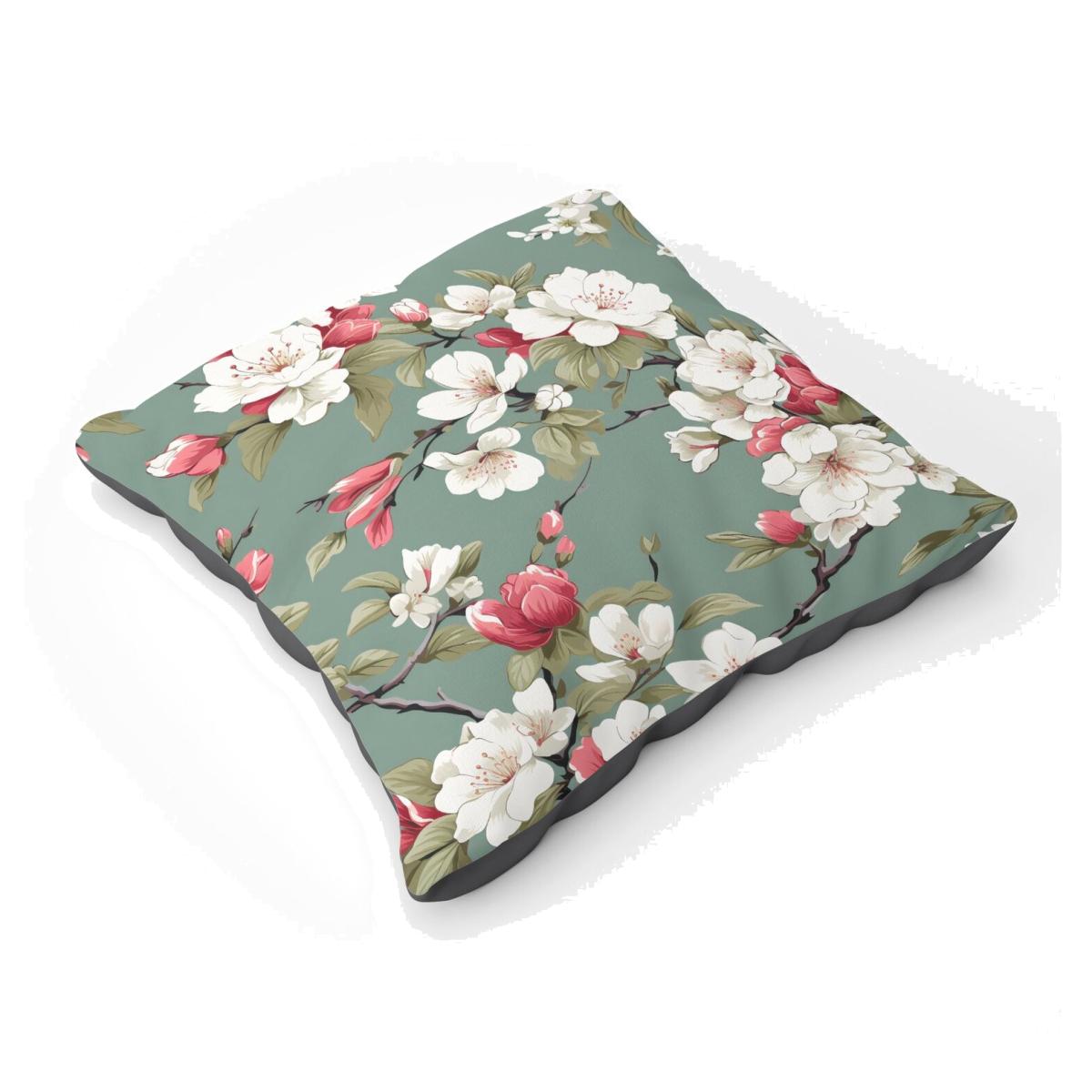 Pink And White Blossom Floor Cushion - Green