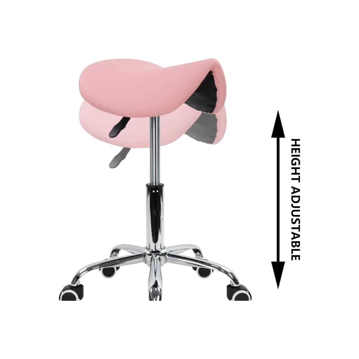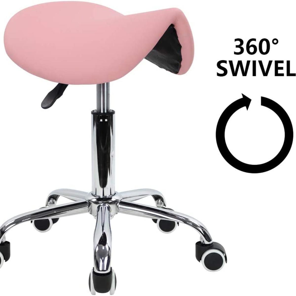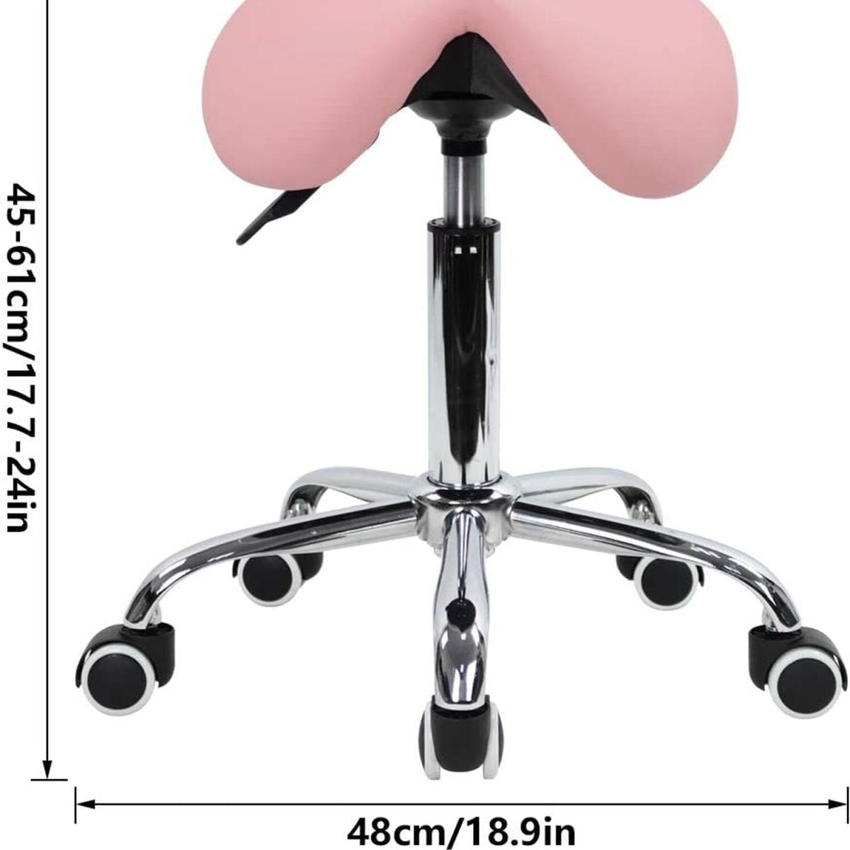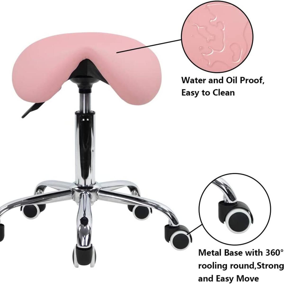 The steel base makes the stool strong and durable. Holds up to 135 kg. 360-degree rotation wheels provide move freely, suitable for kitchen, living room, clinic, living room, massage, salon, beauty etc. The seat cushion is slightly thicker than the traditional and sits comfortably. A handle easy to adjust the degrees of elevation to meet the needs of different occasions. The cushion is wrapped in PU leather, waterproof and easy to clean.360 Degree Rotation Wheels. The wheels rotate 360 degrees. Nylon feet, easy to move and noise-free, protect the floor from scratches. The saddle cushion is made of PU leather, which is very comfortable and elastic.