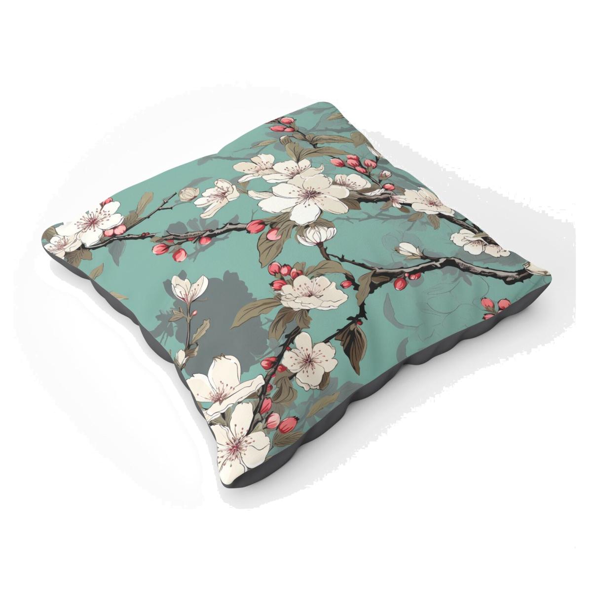 Pink Blossom Asian Design Floor Cushion - Green