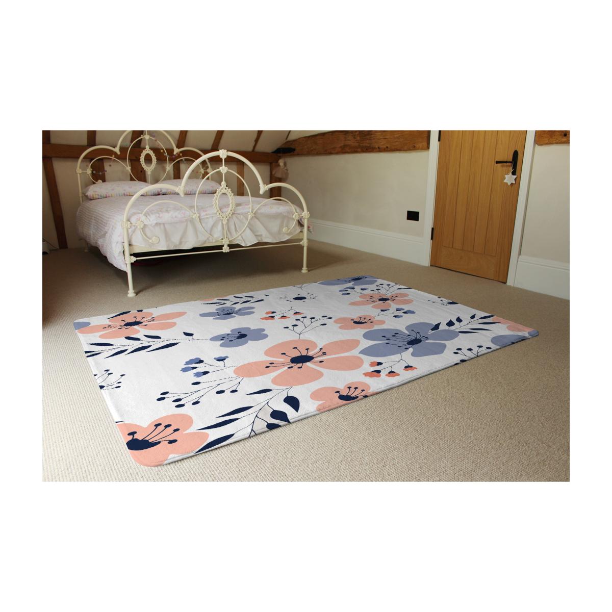 The pink and blue flower rug is a versatile piece that adds a fresh, cheerful touch to many interiors. I love its playful yet sophisticated design, making it suitable for both contemporary and more traditional spaces, such as a child's bedroom or even a cosy living room. Its white base helps it work seamlessly with neutral colour schemes, while the floral pattern injects colour without overwhelming the space. Practical styling tips include pairing it with light, neutral furnishings to let the rug be the focal point or layering it over a more muted carpet for added interest. It's also a great pick for creating a bright, inviting atmosphere in smaller rooms, thanks to its lively pattern and colour palette.