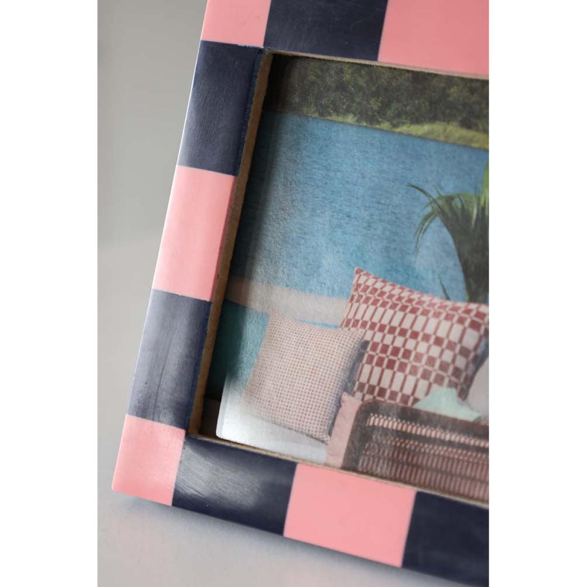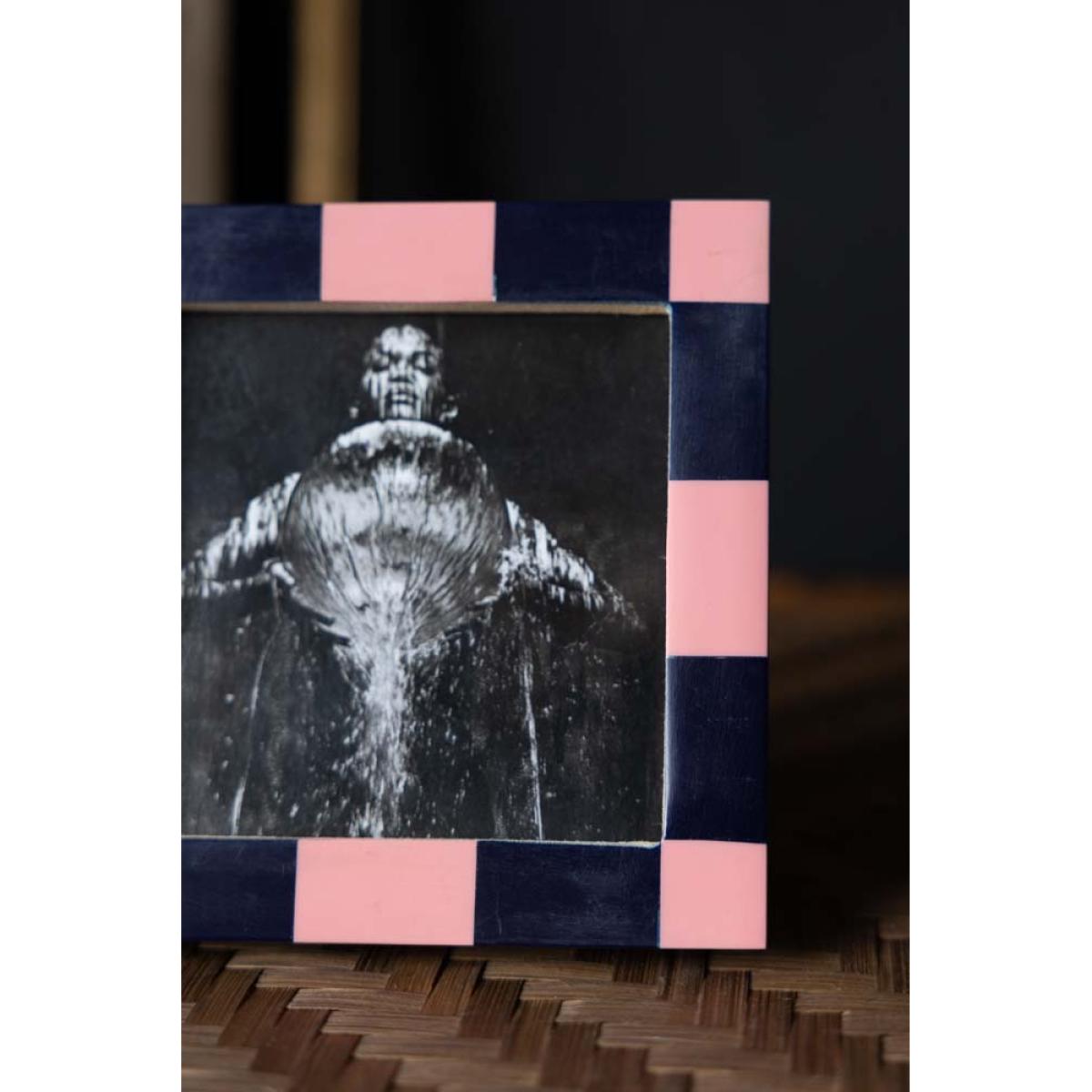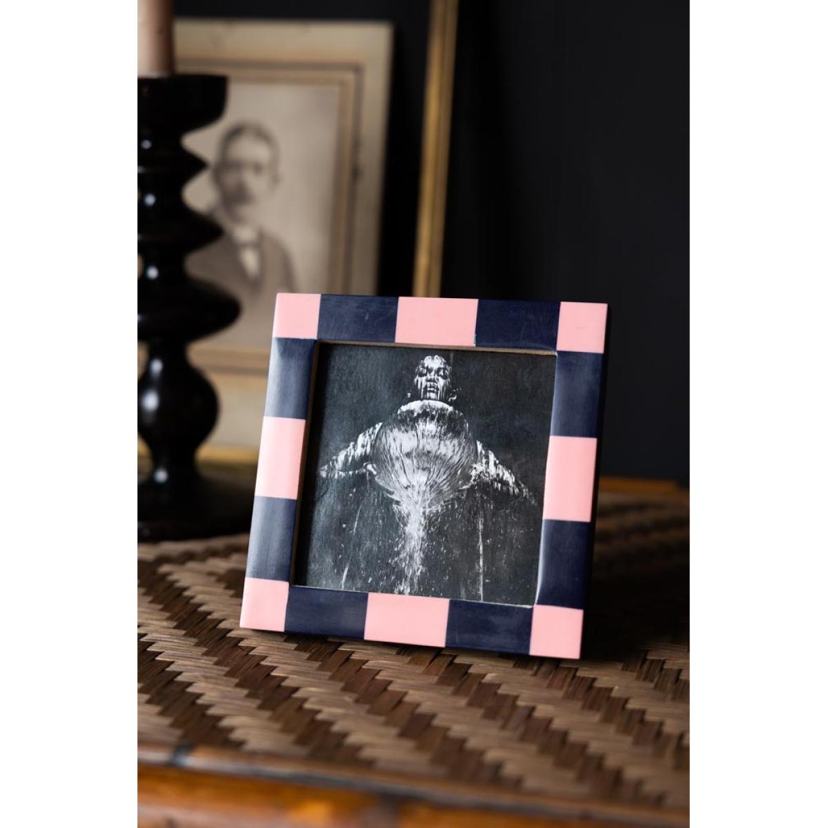 About The Pink Checkered Photo FrameThe Pink Checkered Photo Frame transforms your favourite photo with a splash of colour. With a polyresin frame, the design celebrates the checkerboard trend with a navy blue and pastel pink colour palette. Designed for square photos, the picture frame measures 13cm x 13cm and fits a 9.3cm X 9.3cm photo. Why We Think You’ll Love The Chequered Photo FrameAs one of our favourite trends of the moment, checks and stripes are a fabulous way to experiment with pattern and this frame is ideal for embracing the trend on a smaller scale. Combining pastel pink with classic navy blue, the square photo frame brings a pop of creative colour to your shelves, desk or surfaces. When it comes to styling, all you need to do is choose a treasured photo and display the frame in pride of place for all to see!