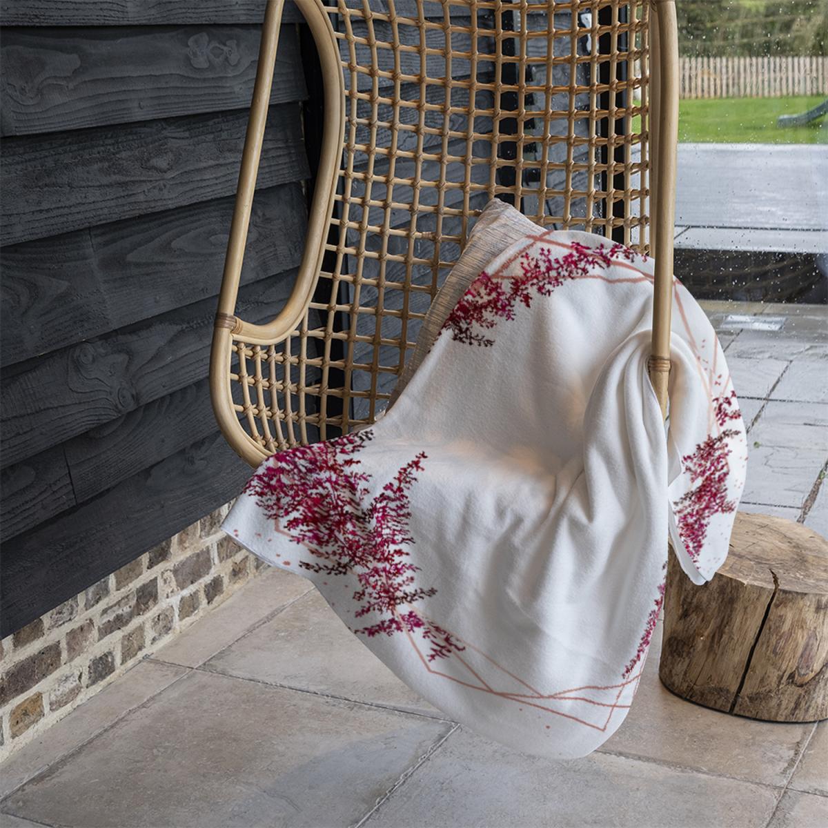 I love this pink flower and geometric shapes throw for adding a pop of colour and visual interest to neutral muted interiors. It works particularly well in contemporary or Scandinavian styles, where clean lines and subtle patterns benefit from a touch of softness. For styling tips, try draping it casually over a sofa or chair to create a cosy, inviting feel, or fold it neatly at the foot of a bed to introduce colour without overwhelming the space. It’s versatile enough to mix with other patterns-think subtle stripes or solids-to keep the look fresh and layered. Practical and pretty, it’s a great way to enhance your interior with both texture and personality.
