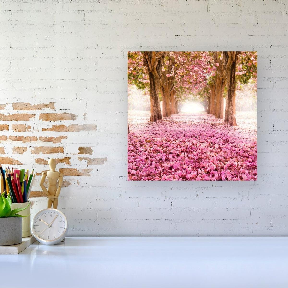 I love this pink flower tree tunnel canvas print for its bold yet calming colour palette, which makes it a versatile statement piece. It works well in both contemporary and vintage interiors, especially in spaces where a touch of colour is needed without overwhelming the room. For styling, consider pairing it with soft pink or neutral accessories, like cushions or vases, to create a cohesive look. Placing it above a simple sideboard or in a living room corner can help it stand out while keeping the overall space balanced. Its large size makes it ideal for creating focal points on empty wall space, adding depth and a sense of serenity to your decor.
