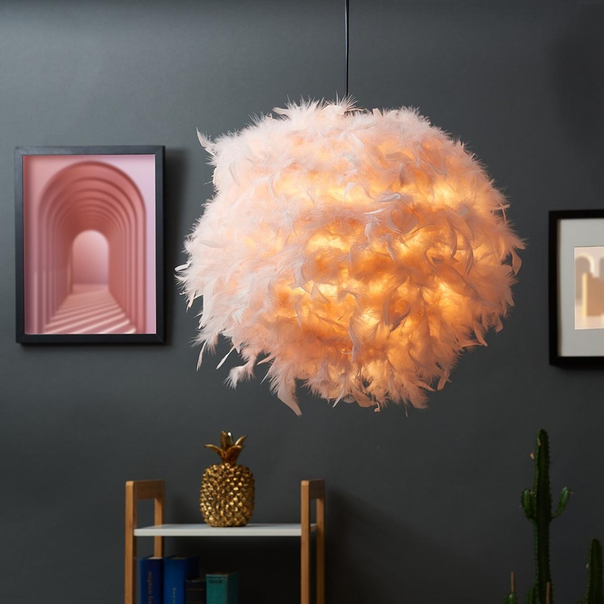This pink fluffy feather ball pendant is a fun and playful addition that works beautifully in eclectic, girly, or vintage-inspired interiors. I love its tactile appeal and how it instantly adds a pop of colour and texture to a neutral space. It’s ideal for creating a cosy, whimsical atmosphere in children’s bedrooms, dressing rooms, or even a quirky lounge area. To style it effectively, consider pairing it with soft pastel tones and delicate metallic accents for a balanced look. Hang it at varying heights to add visual interest and keep it away from high-humidity areas to maintain its fluffy charm. Overall, this light is a charming, statement piece that blends function with playful style.