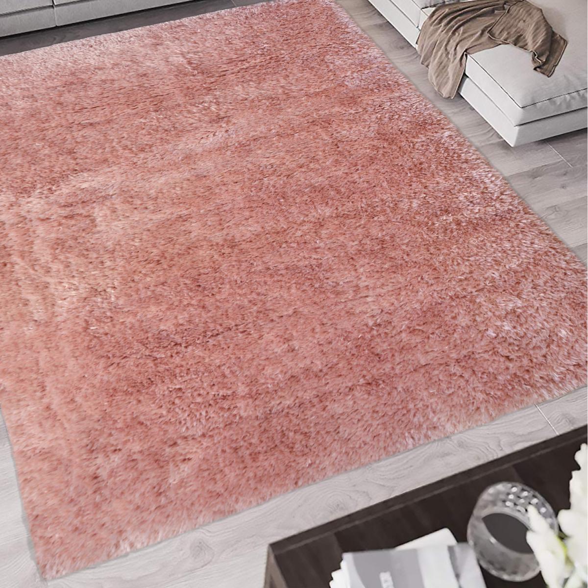 Pink Fluffy Warm Non Shed Polyester Shaggy Rug - Dokka - Pink / 150cm