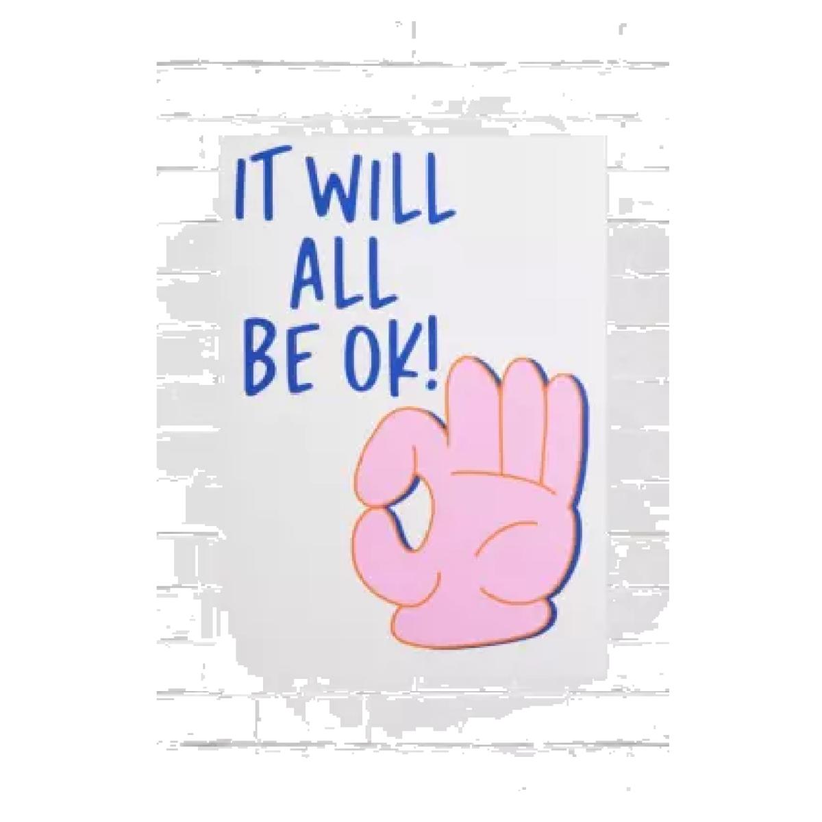 Start the day with an affirmation with this Pink Giraffe Print Co in your space. The wall art print features a hand motif and an 'It will all be ok' printed slogan. **Content + Care** \- Paper \- Wipe clean **Size** \- 30cm x 40cm