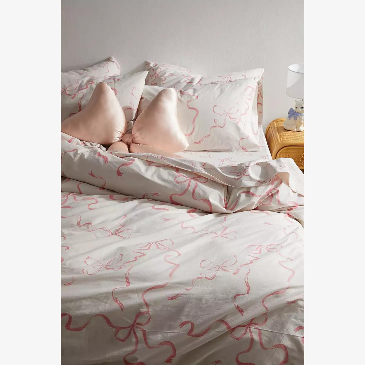 Pretty bows decorate this soft duvet set. It's crafted from soft cotton for a cosy feel. Complete with matching pillows and duvet cover. **About Better Cotton** \- By choosing our cotton products, you’re supporting our investment in Better Cotton’s mission \- This product is sourced via a system of mass balance and therefore may not contain Better Cotton \- Bettercotton.org/massbalance **Content + Care** \- 100% Cotton \- Machine wash **Size** \- Single (includes 1 pillowcase): 135cm (W) x 200cm (H) \- Double (includes 2 pillowcases): 200cm (W) x 200cm (H) \- King (includes 2 pillowcases): 230cm (W) x 220cm (H) \- Pillowcase: 75cm x 50cm