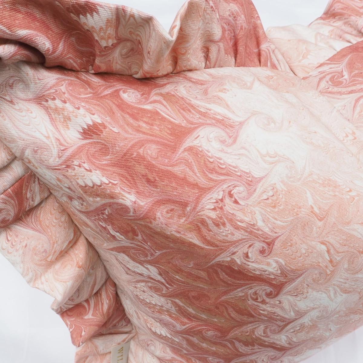 Wildmore's show stopping marbled design, Azure Main, has been hand made into statement striped cushions. Our stripy marbled design works beautifully across this large cushion and looks great on sofas, benches or as a throw pillow on your bed. The plaster pink palette is ideal to add pattern and works wonderfully across eclectic interiors or as a bold piece in a slick, modern space. Matching wallpaper is also available. Designed and hand made in our Wildmore studio in England into a large, luxuriously pleated cotton cushion.