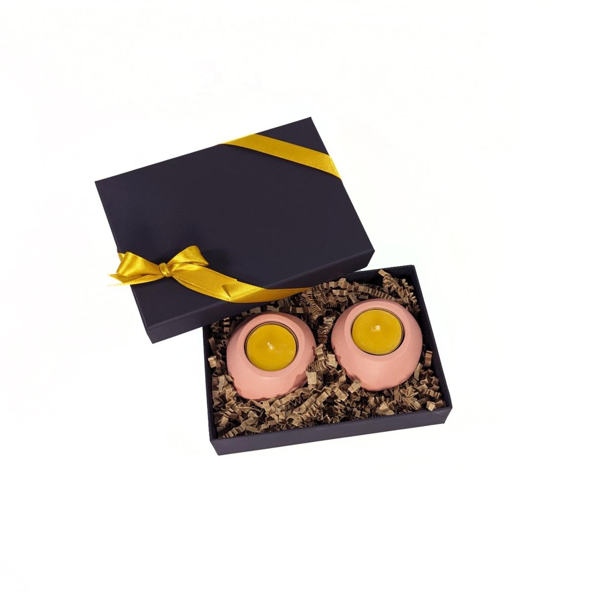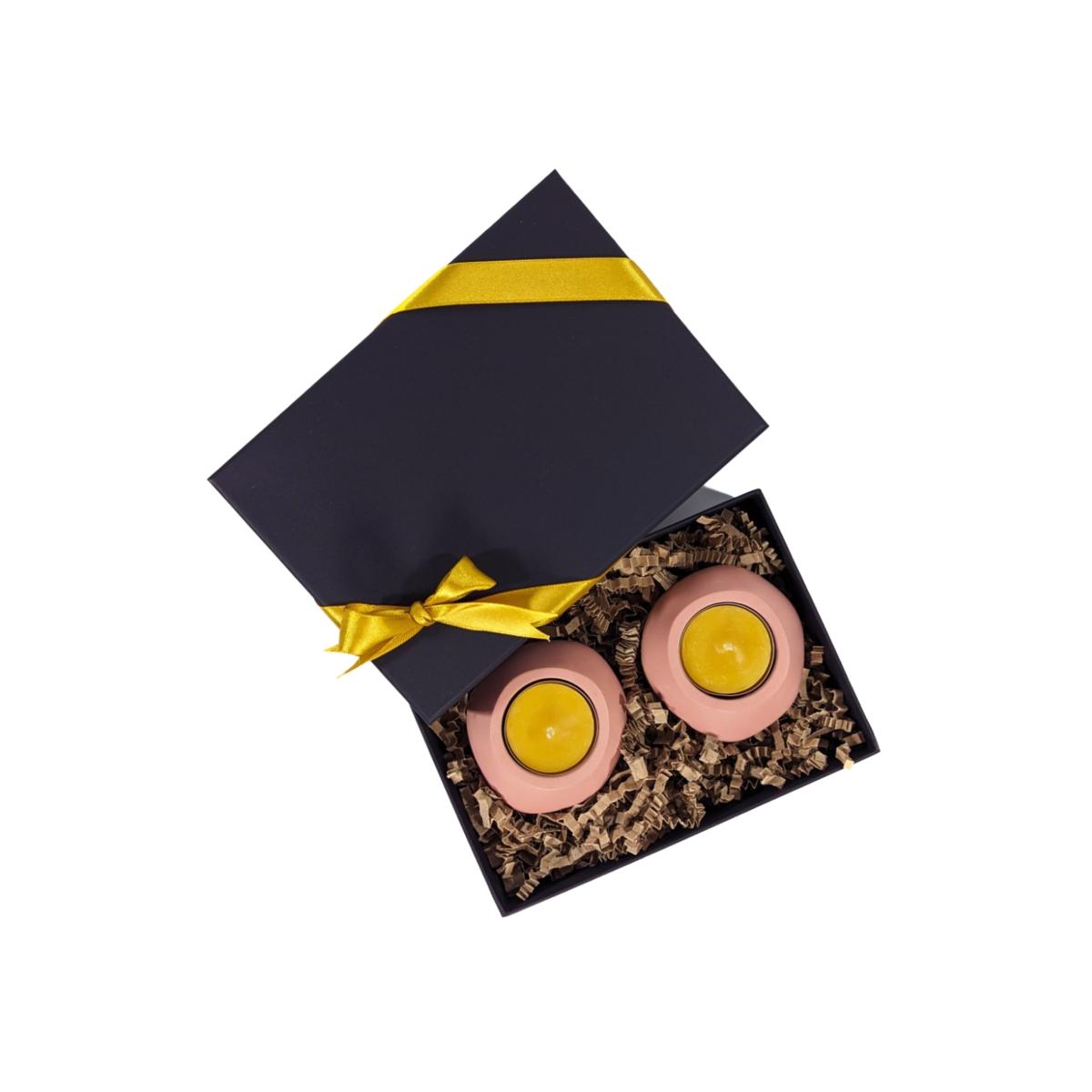 Two of our Votsalo candle holders paired with two100% beeswax tealights, beautifully presented in a gift box. The Votsalo candle holder features a unique, organic shape, which gives it a tactile feel. Designed and hand crafted in our South London studio, its clever design gives it dual purpose, accommodating tealight candles as well as dinner candles. Perfect for both indoor and outdoor use, the votsalo will elevate your dinner table and add a sophisticated touch to your home decor. The beeswax candles have been hand crafted by Five Bees Yard, a 3rd generation of beekeepers, in their Hertfordshire apiary using 100% raw beeswax extracted from their hives. Each tealight candle burns approximately 3-4 hours. The set includes 2 candle holders of the same colour and 2 beeswax tealights.