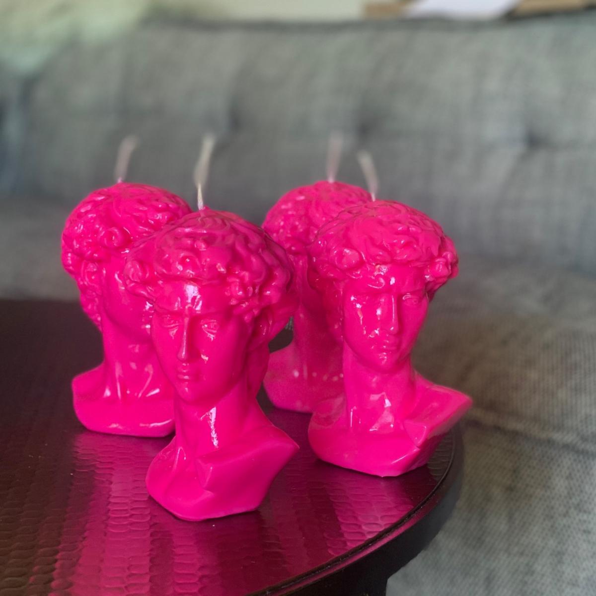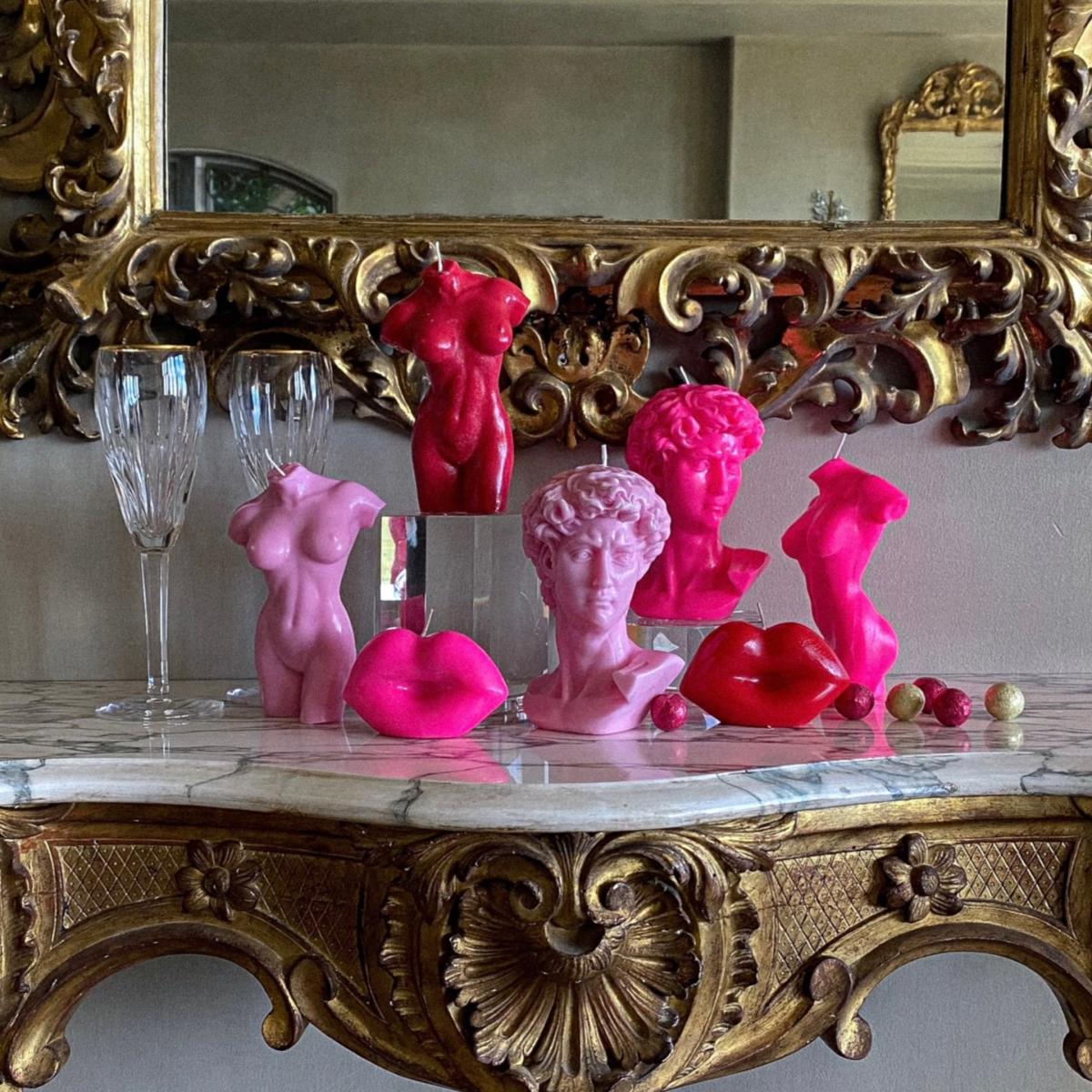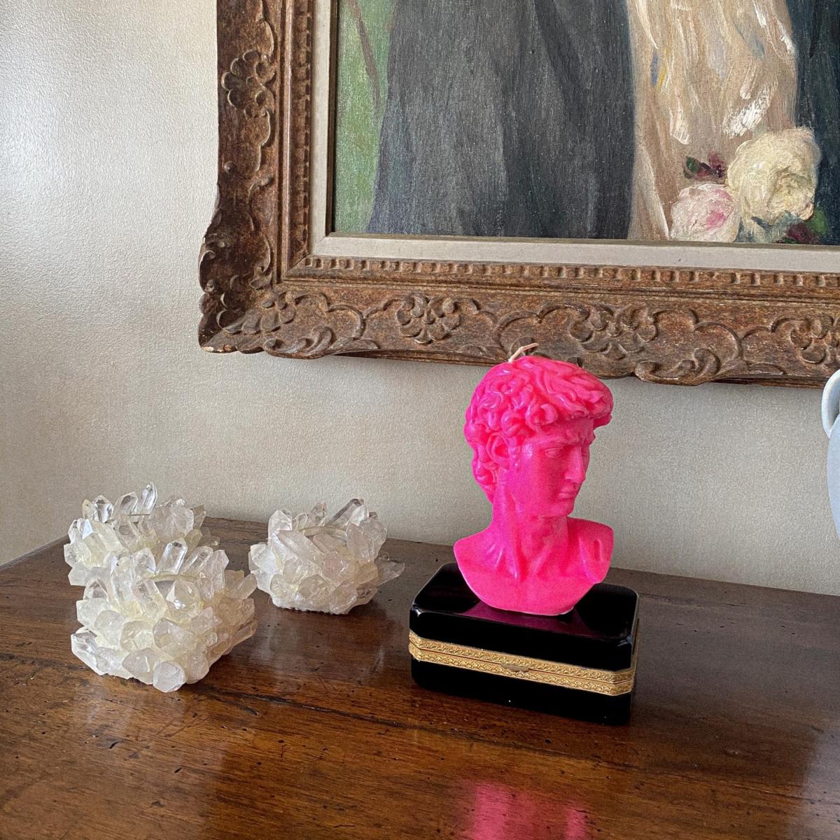 I love this candle for adding a bold, contemporary statement to modern interiors. Its vibrant neon pink hue and playful bust shape work particularly well in eclectic or minimalist spaces where a pop of colour can act as a focal point. It can be styled on open shelves, coffee tables, or entry consoles to inject personality without overpowering the room. For practical tips, pair it with understated decorative objects to let it stand out, and consider using it in well-lit areas to highlight its striking colour. This piece is perfect for adding a quirky, artistic touch to both domestic and creative spaces.