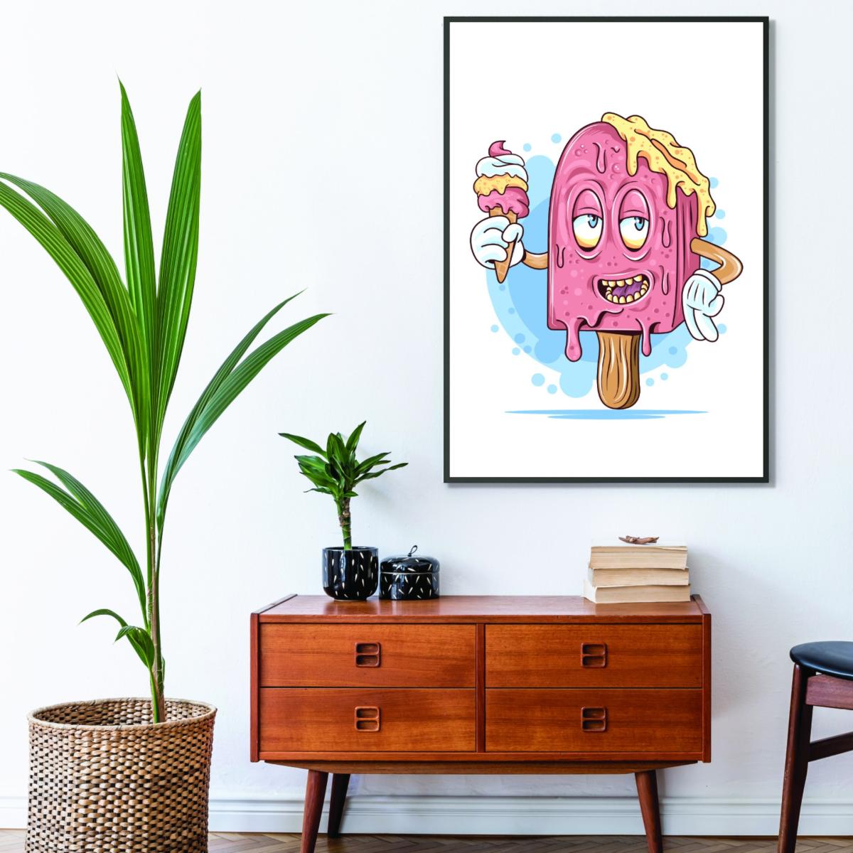 I love this pink and purple ice-cream-themed print because it injects a playful and contemporary vibe into any space. It works particularly well in eclectic or casual interiors, especially in kids’ rooms, kitchens, or a lively lounge. Practical styling tips include pairing it with minimalist furnishings to make the artwork pop, or creating a colour-coordinated gallery wall with other bold prints for a vibrant focal point. Framing it simply in a sleek white or coloured border enhances its modern feel, while placing it against neutral walls ensures the colours stand out for maximum impact.