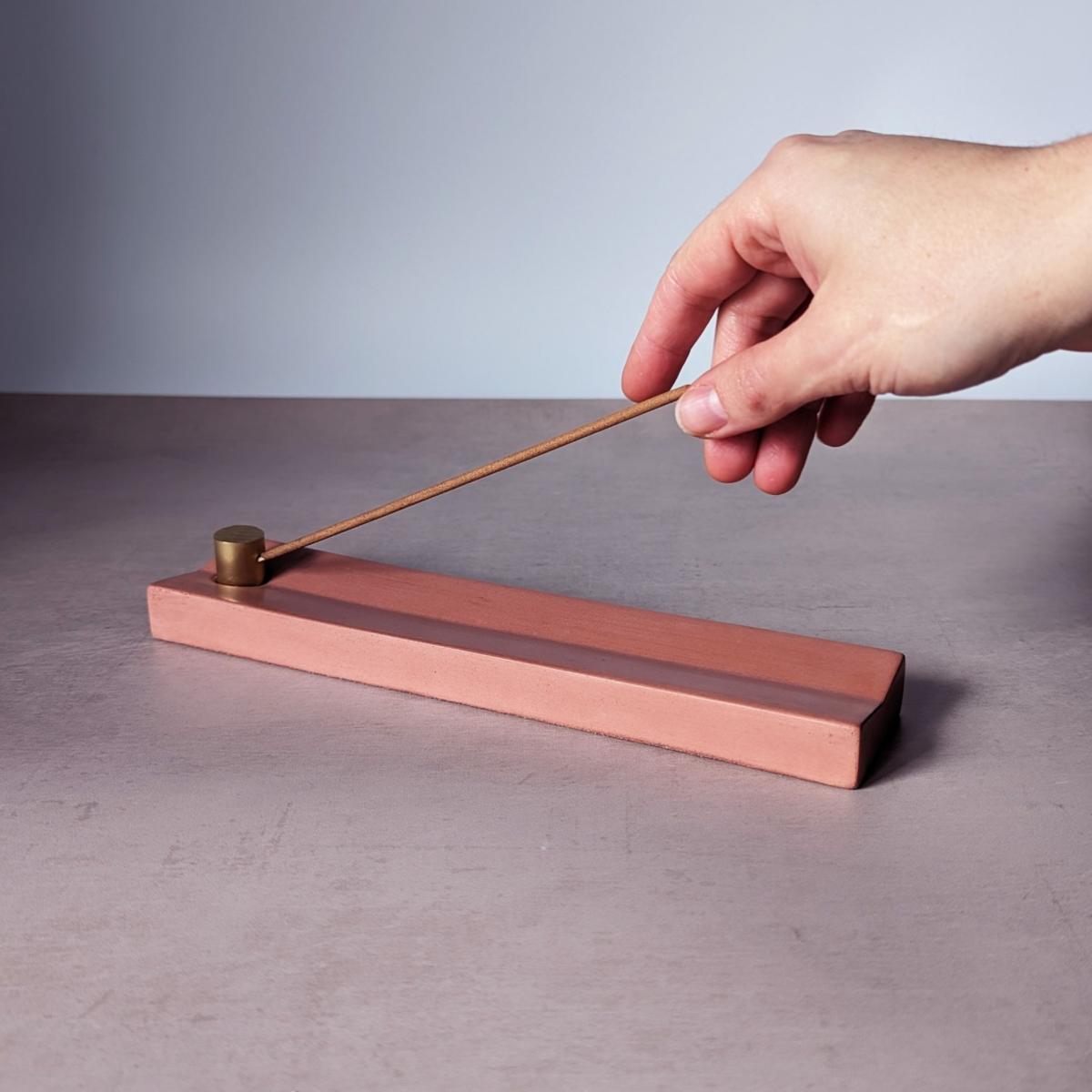 Aura is a modern, elegant incense burner with clean lines. Crafted from eco-friendly concrete and solid cast brass, it comes in a selection of five earthy shades. Featuring a practical design to catch all ashes, this incense holder is mess-free and suitable for Indian incense sticks of up to 25 cm length, Japanese sticks and incense cones. Hand-crafted with care in our South London studio, this incense burner is the perfect combination of form and function for your relaxation ritual.
