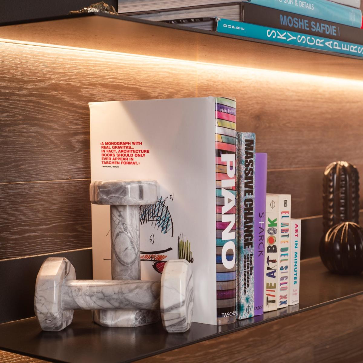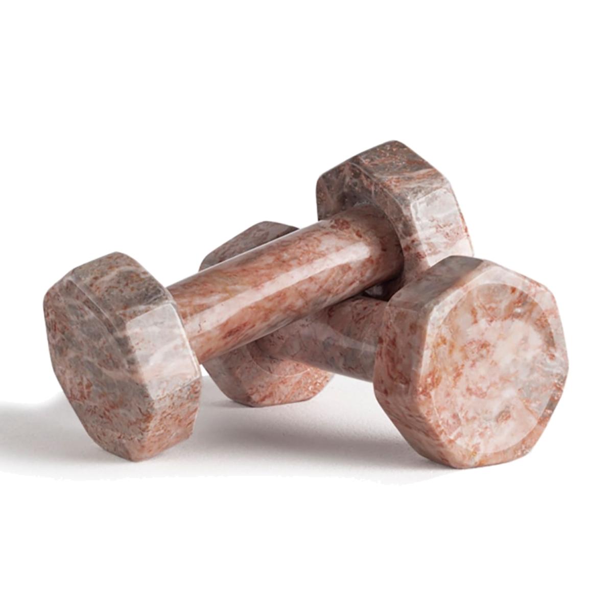 The marble dumbbells give an elegant style when exercising. We also love not having to store them and use them as decorative items or functional sculptures at home or bookends! The marble being natural and hand carved, each piece will be unique and different from the photo. Sold in pairs.