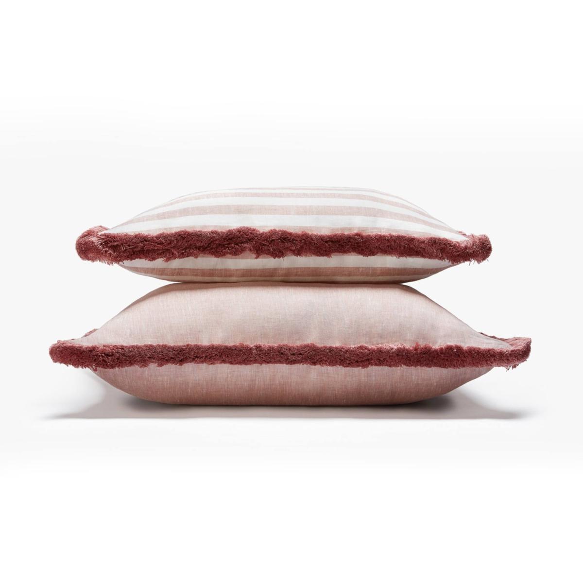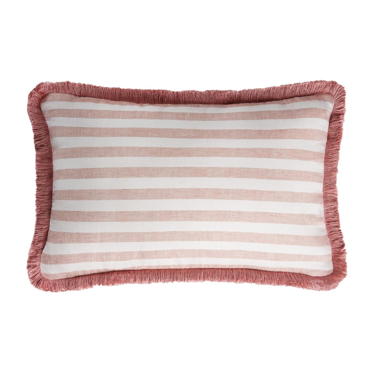 LO DECOR | Happy Linen Pillow the perfect accent piece for an easy style update, this cushion makes a chic accent for any well-decorated home, adding charm to a bed, sofa, or your favorite armchair. Crafted of pure Italian linen, refined with sophisticated cotton fringes, LO DECOR Linen collection is available in both plain and striped colorsboth with its delicate hues and details with understated glamour. Warm colors, exquisite craftsmanship, and elegant materials are the hallmarks of these cushions which will be a refined addition to both a classic and contemporary decor. Removable cover. Care Instructions: Dry Wash