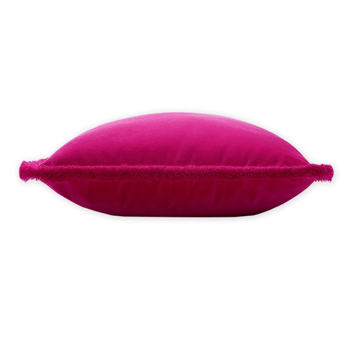 Tailored quality meets stylish allure in this stunning cushion, ideal to increase the comfort of a bed or sofa while not renouncing glamour. The rich inner padding is enveloped in prized velvet, offered in a vibrant combination of solid fuchsia bordered with fuchsia profiles that lend it elegant chromatic depth. Padded with soft polyester fiber, this cushion is a mesmerizing example of Lo Decor's excellent quality standards. Removable and washable pillow cases with a stuffing.