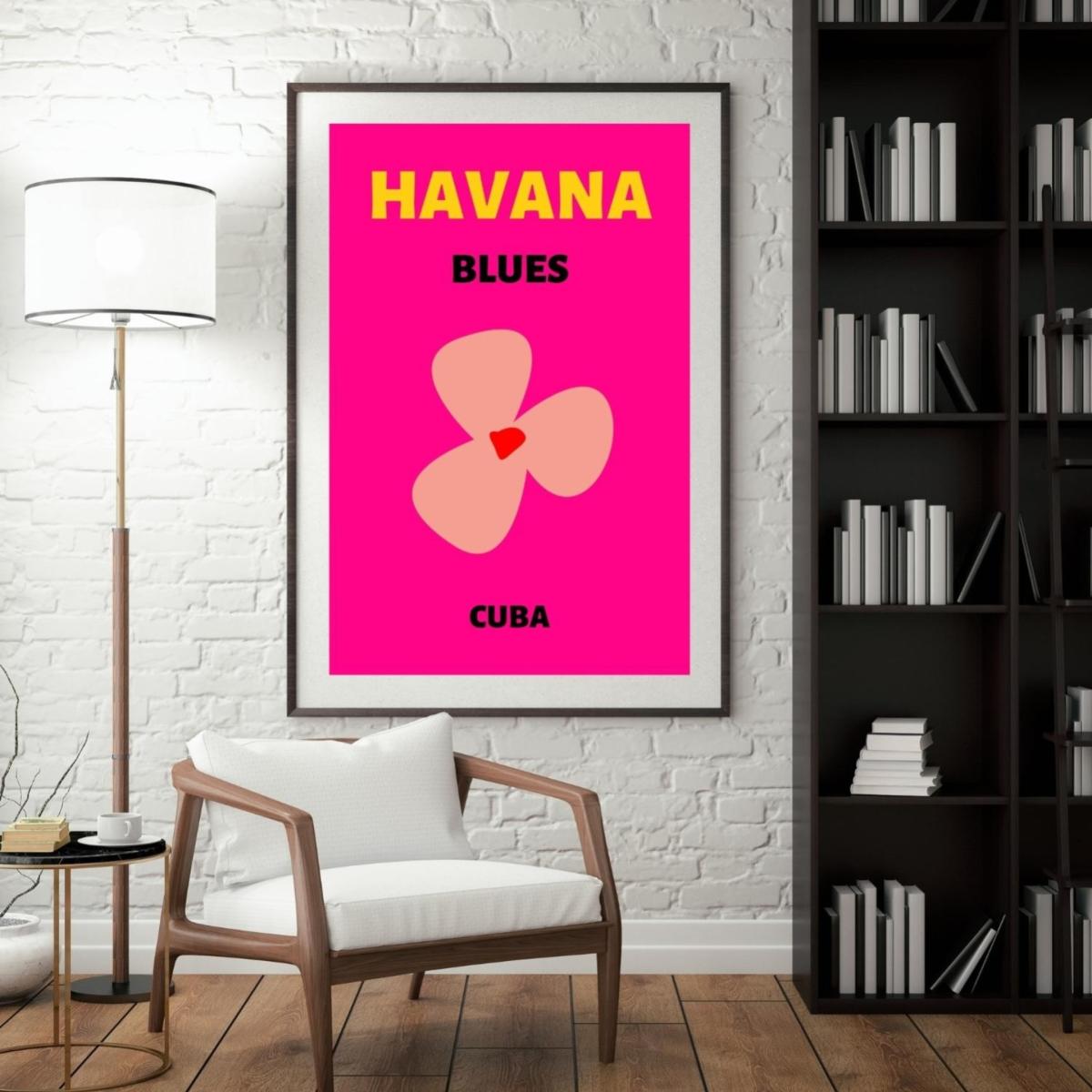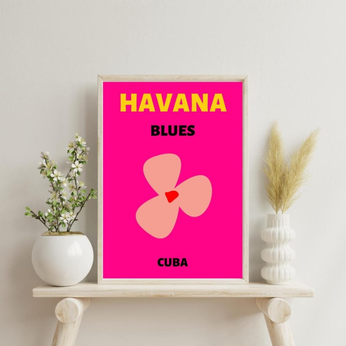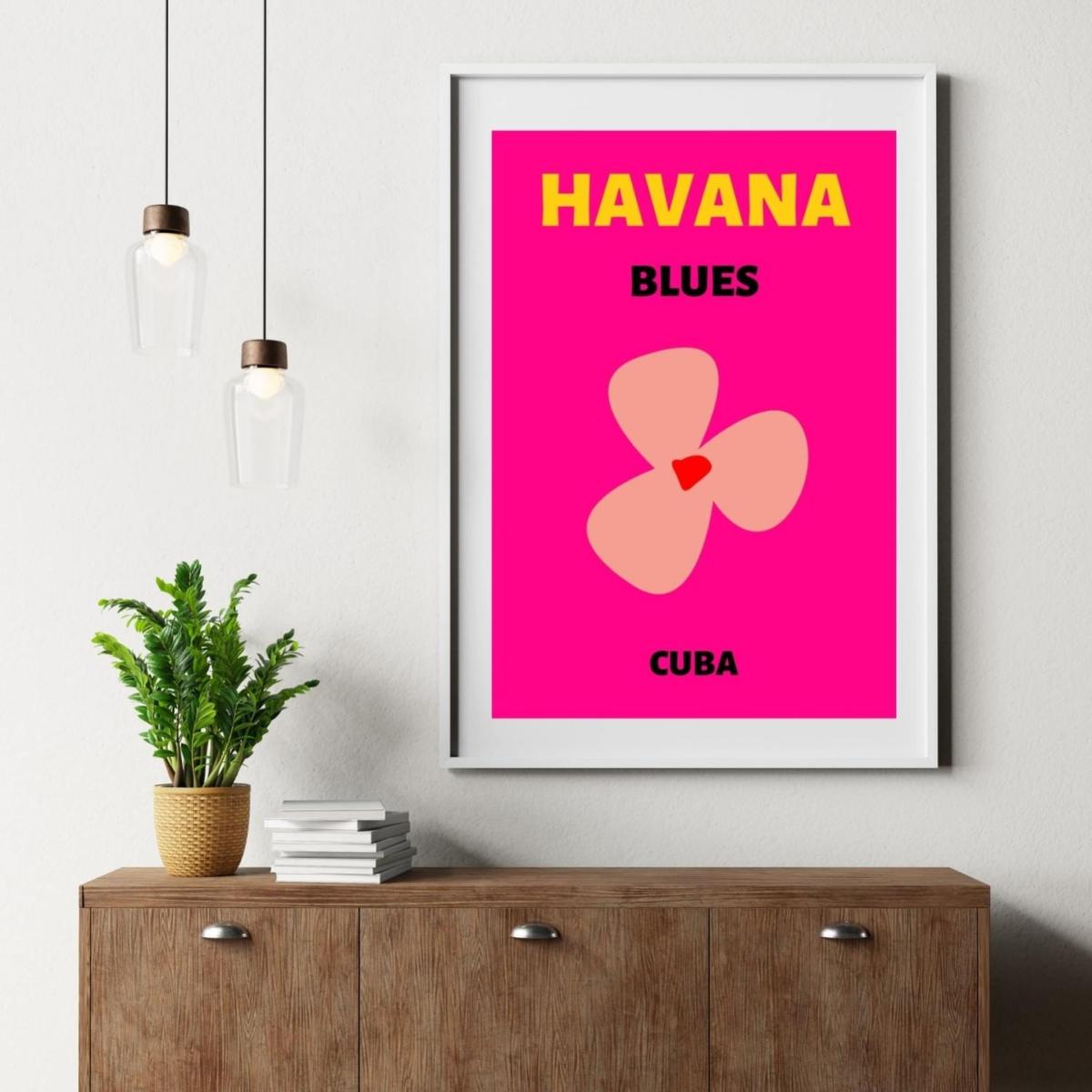 Embrace the vibrant pulse of Cuba with the Havana Blues A3 poster. This lively piece showcases a playful pink background with a unique floral design, representing the warmth and passion of Havana. Perfect for adding a splash of color to modern interiors, it brings the essence of tropical charm and artistic flair to any space. Ideal for those who appreciate travel-inspired decor and the dynamic energy of Cuban aesthetics. Note: We offer this poster unframed at the moment.