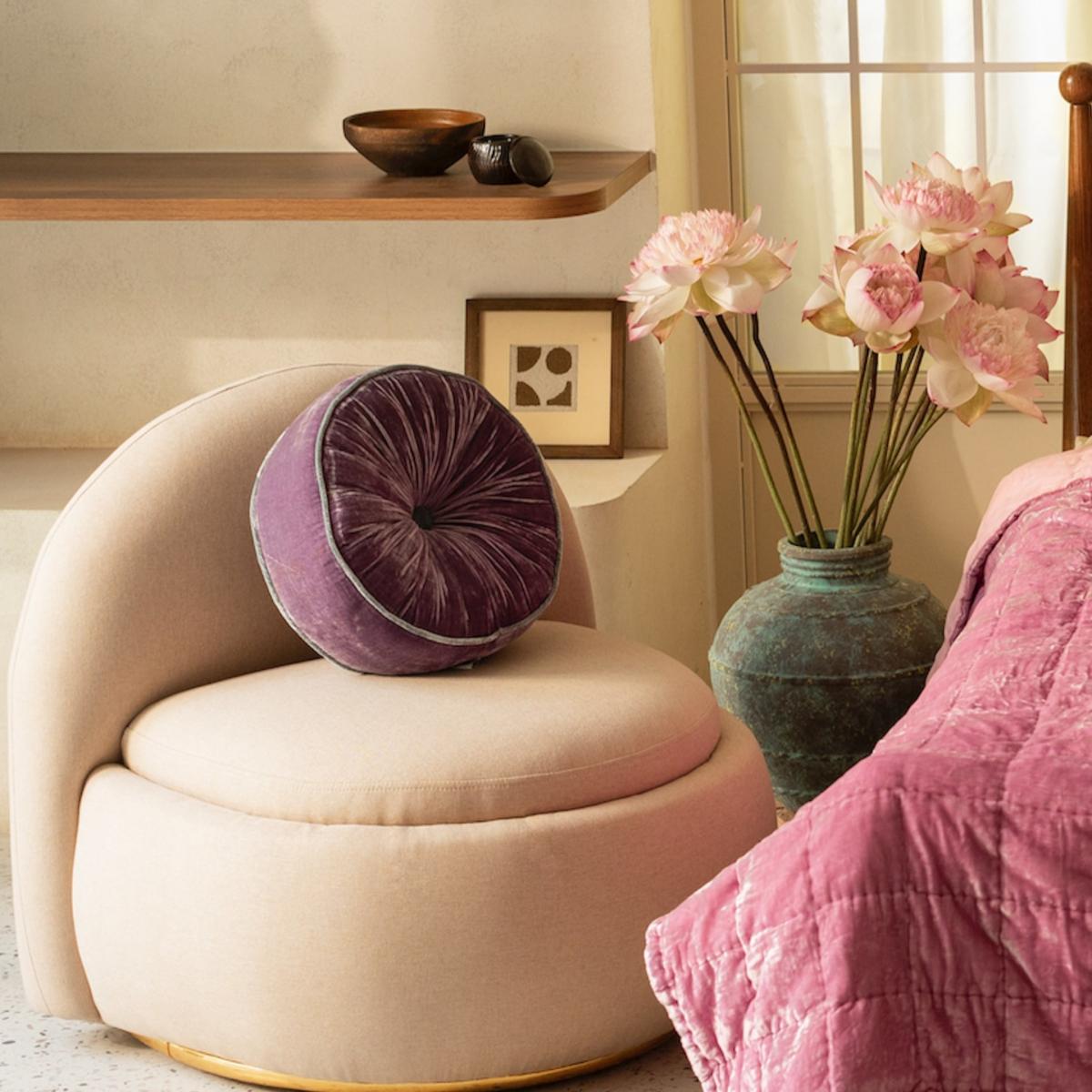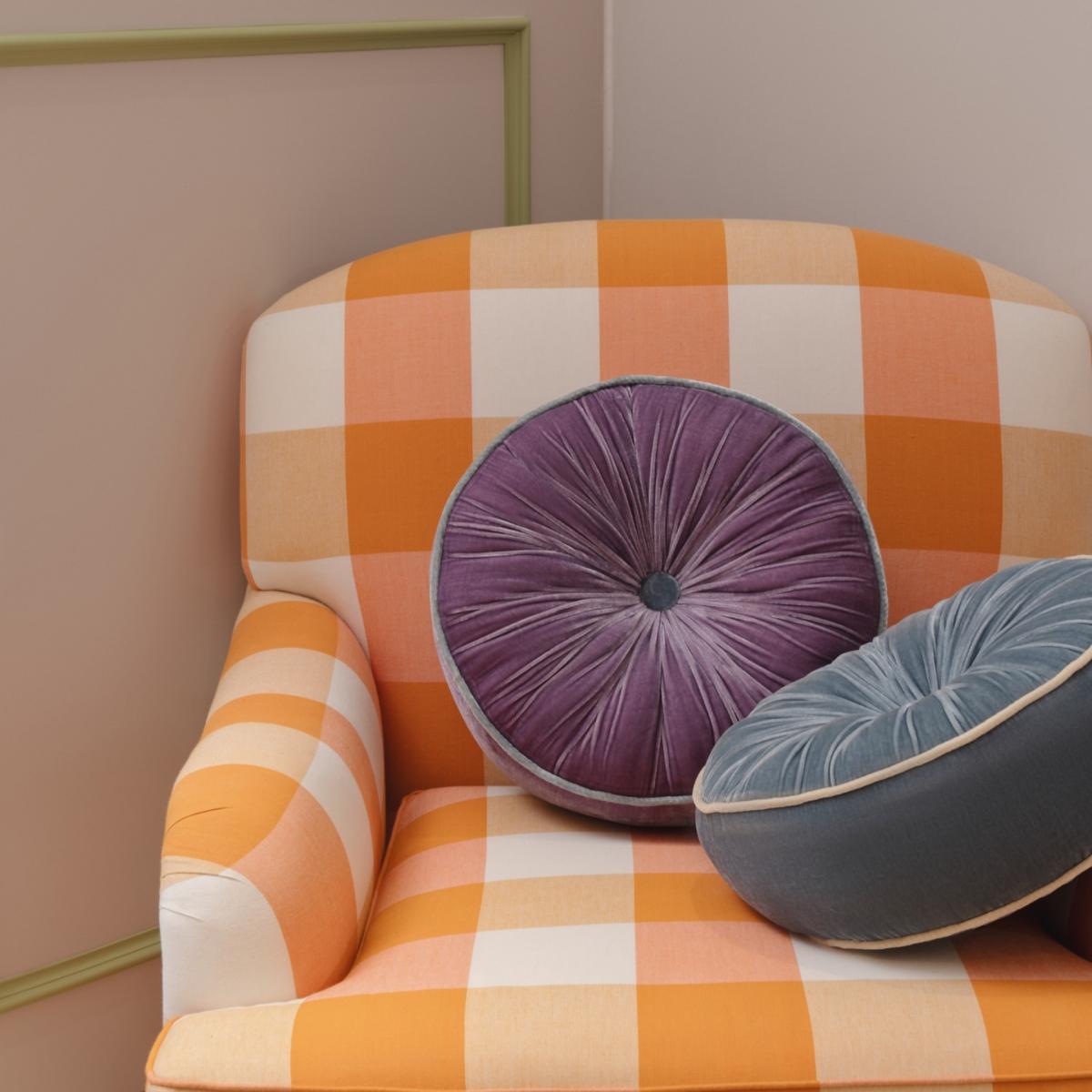 Holiday Edition for this season with contrast velvet pipeline ! Add a touch of exotic with this pumpkin lush Velvet Round cushion to your existing pillow assortment in various shades. Comes pre-filled. Diameter 35cm As the cover is not removable, we recommend spot cleaning only with a clean, damp cloth. Cover: Silk Velvet ( 65% Silk, 35% Polyester) Inner: Polyester