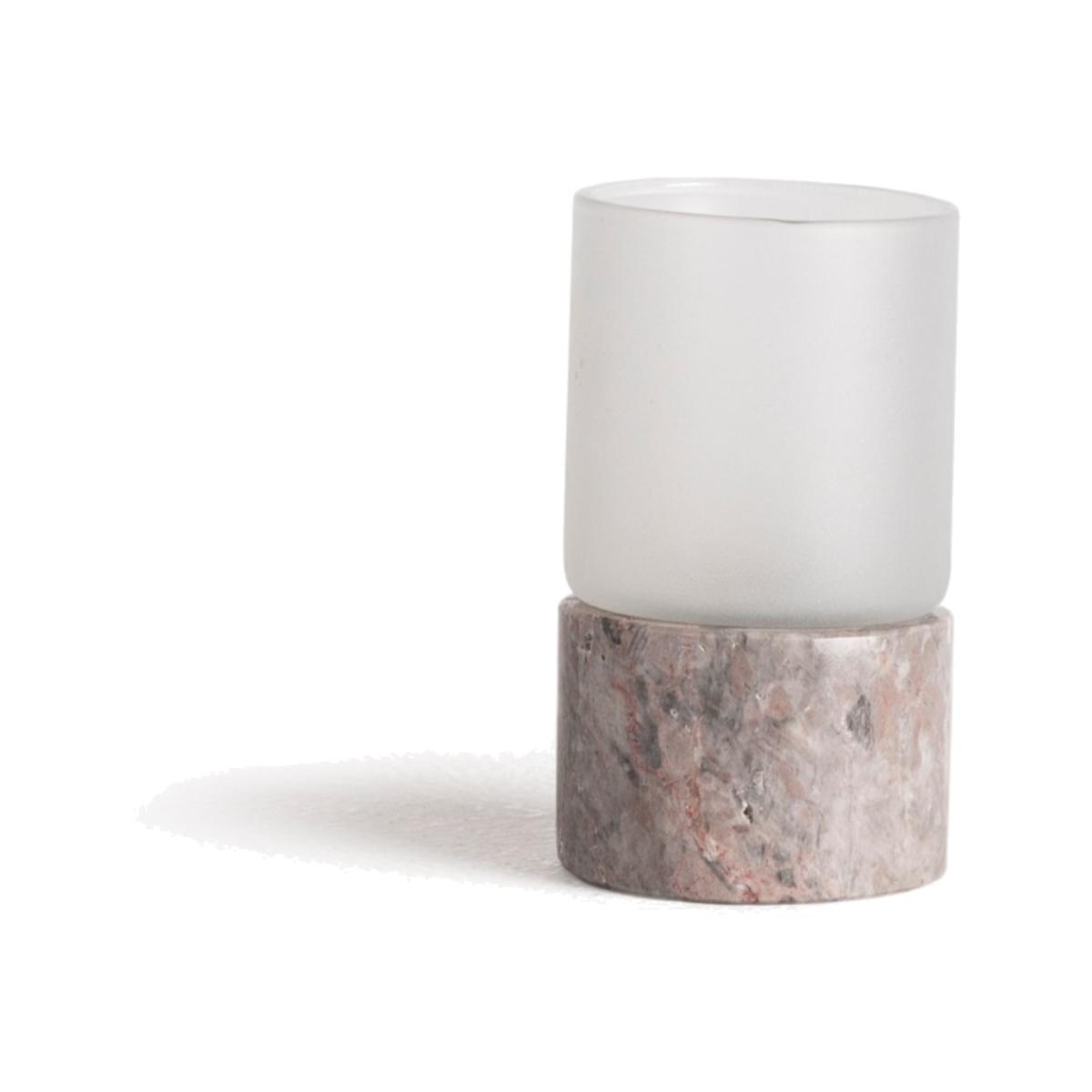 A perfect tea candle holder to set the table, living room, bathroom. Its frosted glass shade diffuses the candlelight harmoniously and perfectly sets the space. One, it looks perfect however several boards combine incredible. Carved in marble or volcanic stone by hand. Frosted glass shade in borosilicate that withstands high temperatures. Standard tea-light candle.