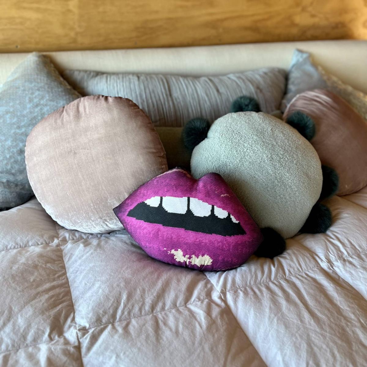 I love the bold, playful vibe of this pink and purple lips cushion - it’s a statement piece that instantly adds personality to a space. It works particularly well in contemporary or eclectic interiors, where it can serve as a conversational focal point. Practical styling tips include pairing it with neutral-toned sofas or beds to allow it to pop, or mixing it with other colourful accessories for a curated, fun look. Its organic cotton sateen finish keeps things tactile and comfortable, making it as functional as it is striking. Perfect for those wanting to inject a bit of personality and colour into their living room or bedroom without overwhelming the space.