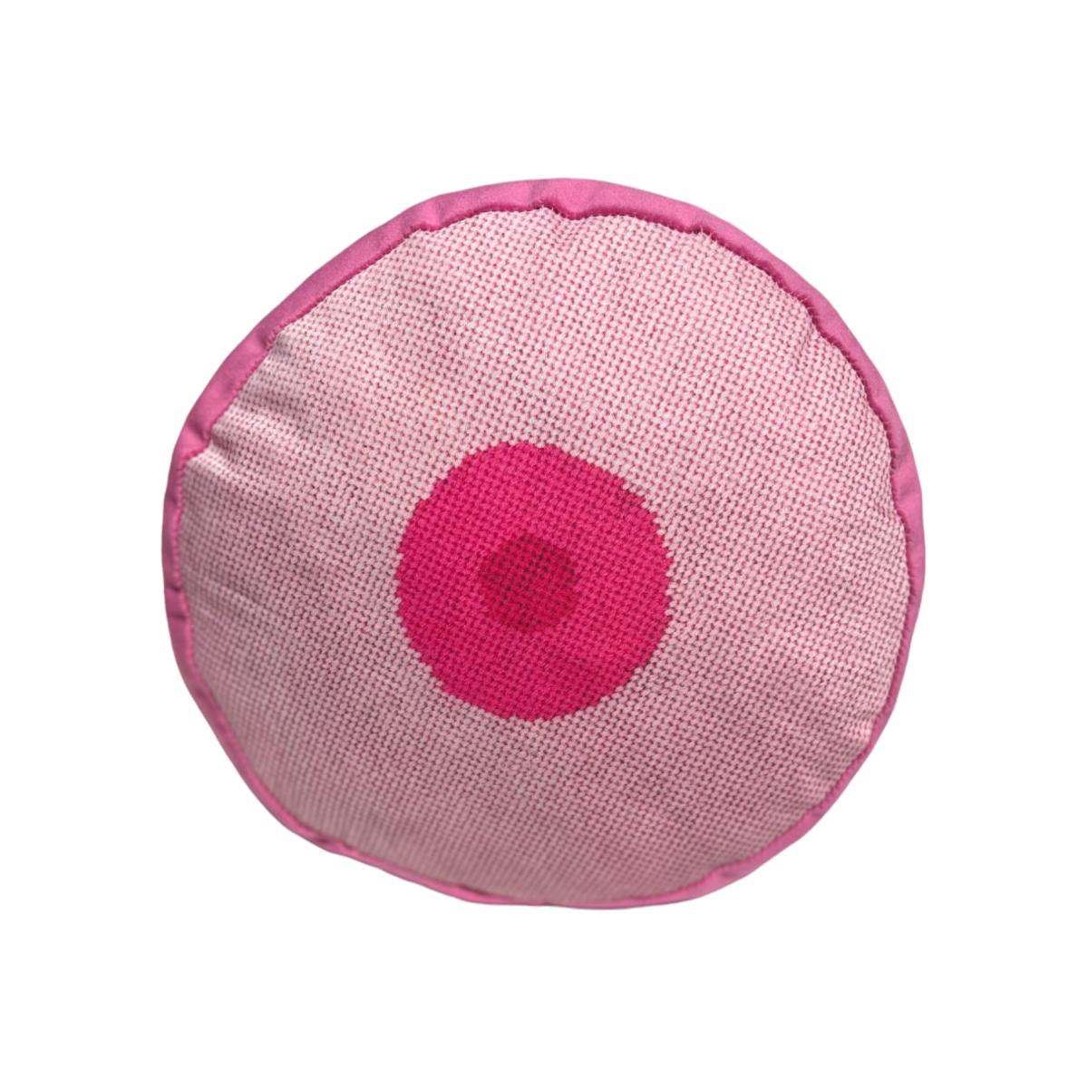 not needlepoint Super sweet in your nursery. Flirty fun in your bedroom! custom made with crazy heart and soul delivered new to you in eco-friendly packaging dry clean private label organic cotton sateen face, a beautiful fabric reproduction of our original needlepoint art digitally printed in the US using eco-friendly water-based inks French pink designer velvet welting and band velvet is 100% polyester blended down pillow insert, 50% down / 50% fiber hand sewn closed