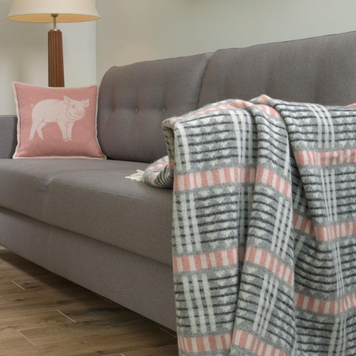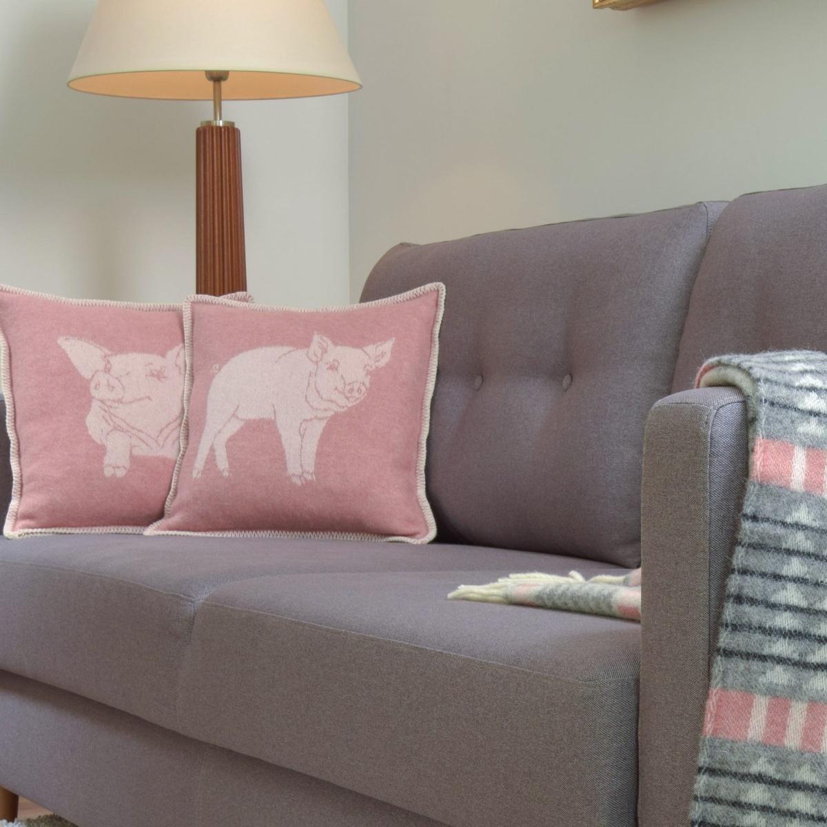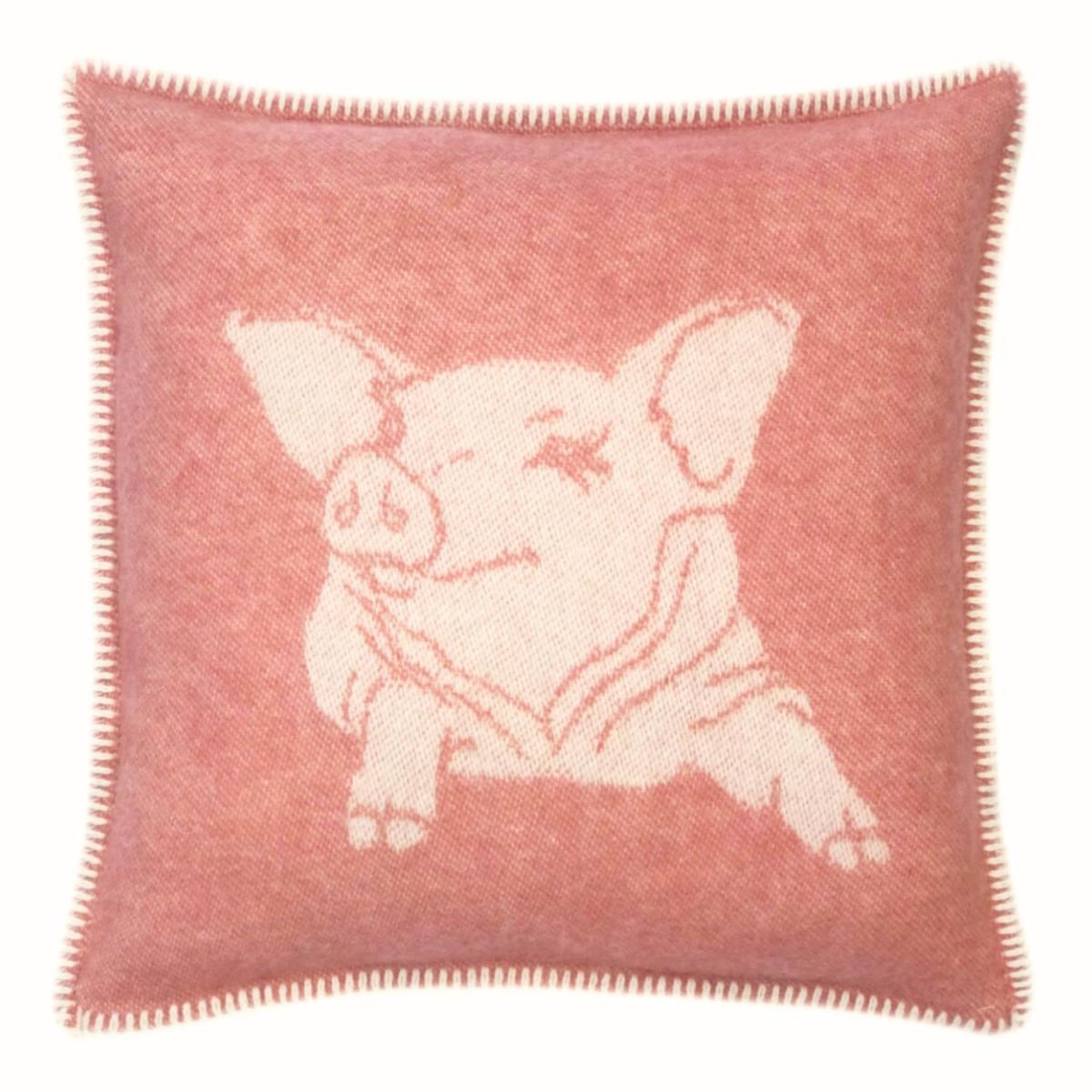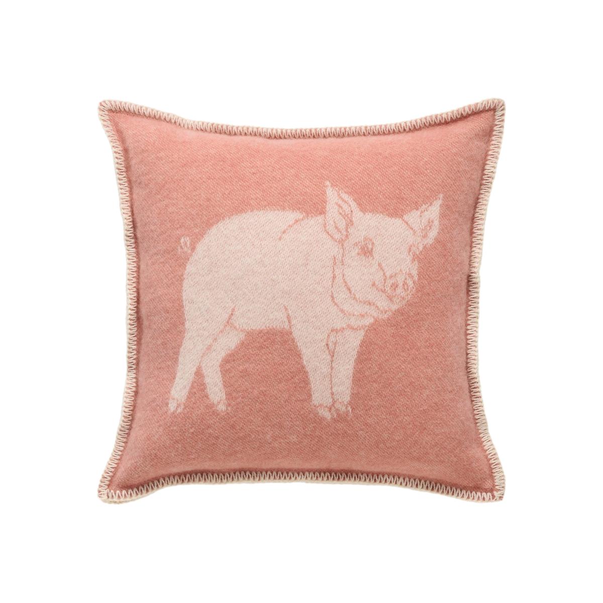 This two-tone pink cushion cover (pad not included) is woven with an adorable piglet design. This cover is guaranteed to make you smile. Made from 100% pure wool, it has a matching image on the reserve side, a zip closing and can be machine washed.