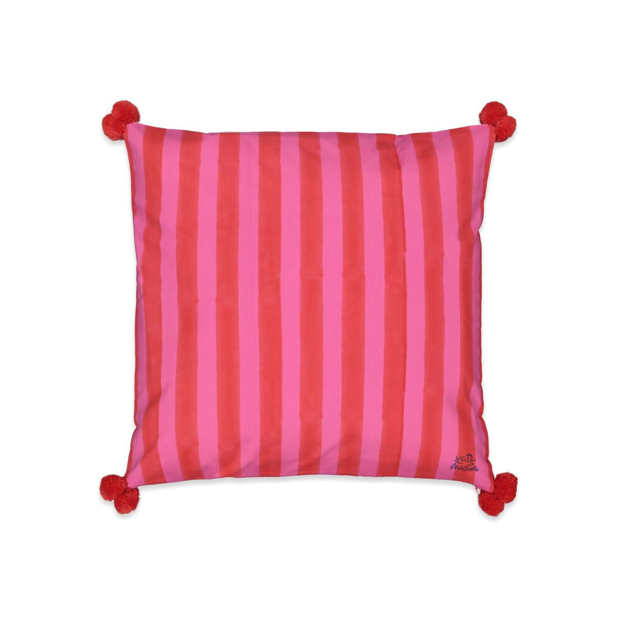 Add a touch of whimsy to your space with this vibrant cushion featuring charming pom pom details on all four corners. It's not only colorful and fun but also incredibly versatile, perfect for sprucing up any setting. Crafted from organic cotton and hand-block printed in India with eco-friendly inks, this cushion is a celebration of both style and sustainability. And for those inevitable spills or mishaps, worry not - it's fully washable with a convenient zipper closure, making maintenance a breeze. 100% organic cotton, block printed by hand with AZO-free dyes. Machine wash cold on delicate and tumble dry low.