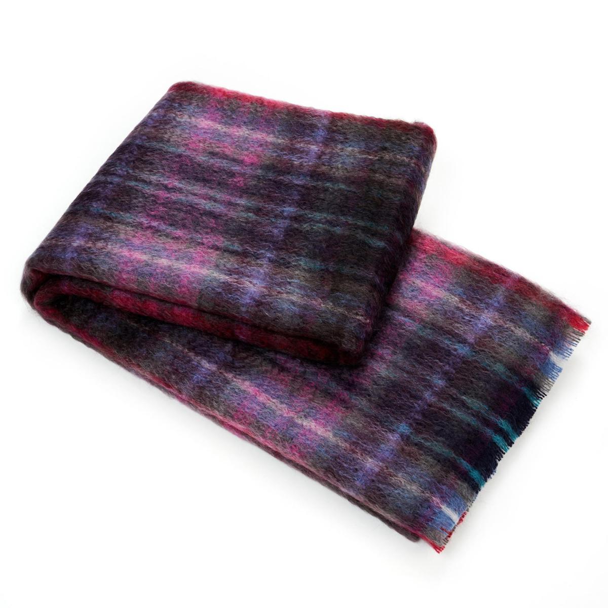 Large Mohair throw perfect for dressing a bedroom, living room or study. The highland throw in sloeberry is made from a blend of fine mohair and pure new wool, sourced and spun in Scotland. Our special drawn finish creates exceptional warmth and lustre.