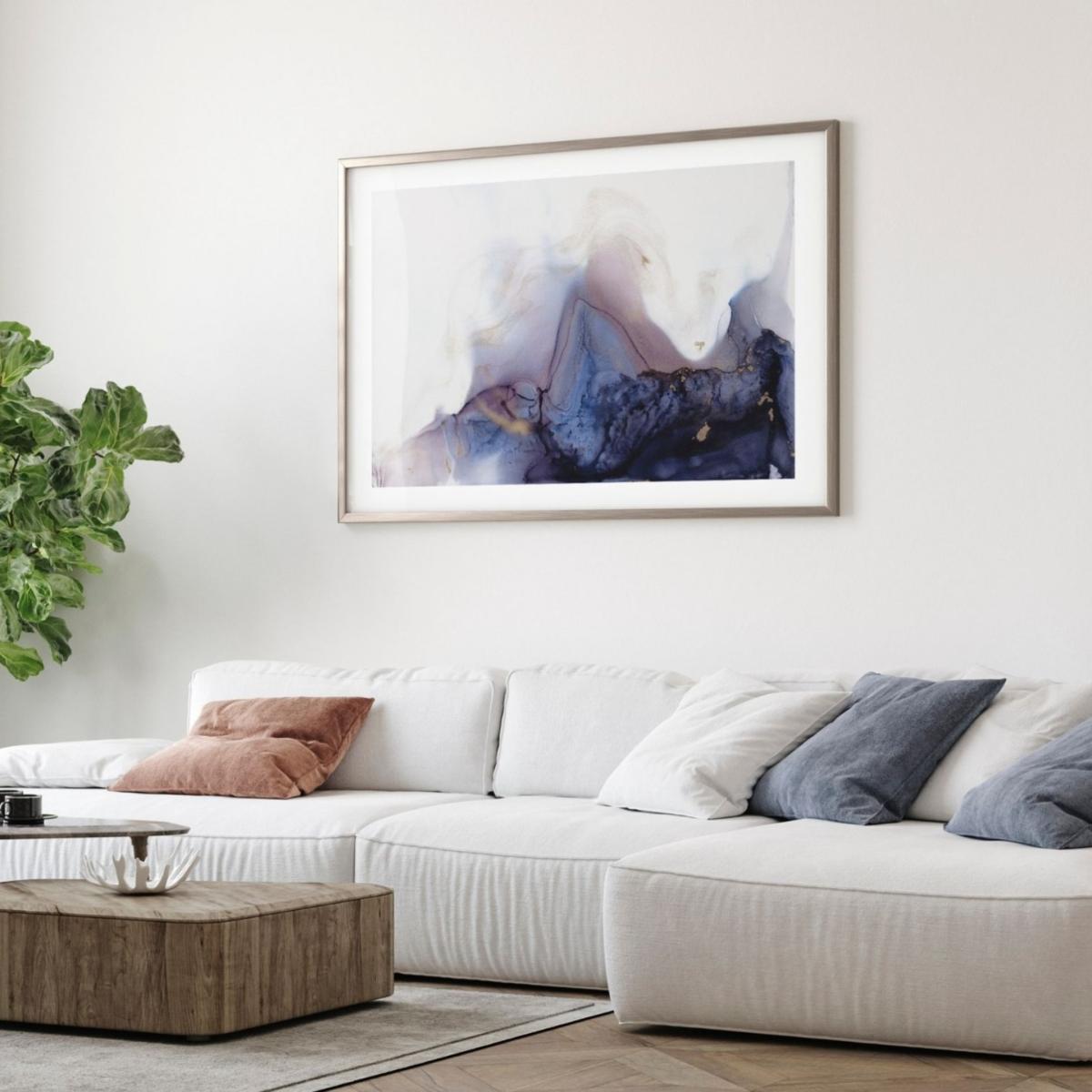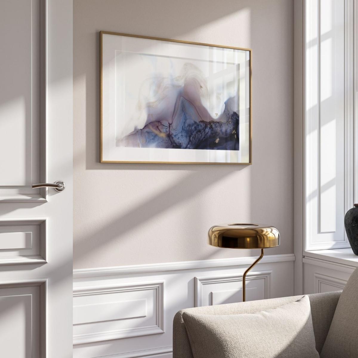 Transcend captures a blend of purple, deep blue, and flecks of gold, illustrating how light, positive energy can coexist with dark, negative energy all around us. Of course, it can be challenging to allow the light in at times, but this piece shows how it can penetrate the dark, and floats almost effortlessly and spreads its uplifting effect far and wide.