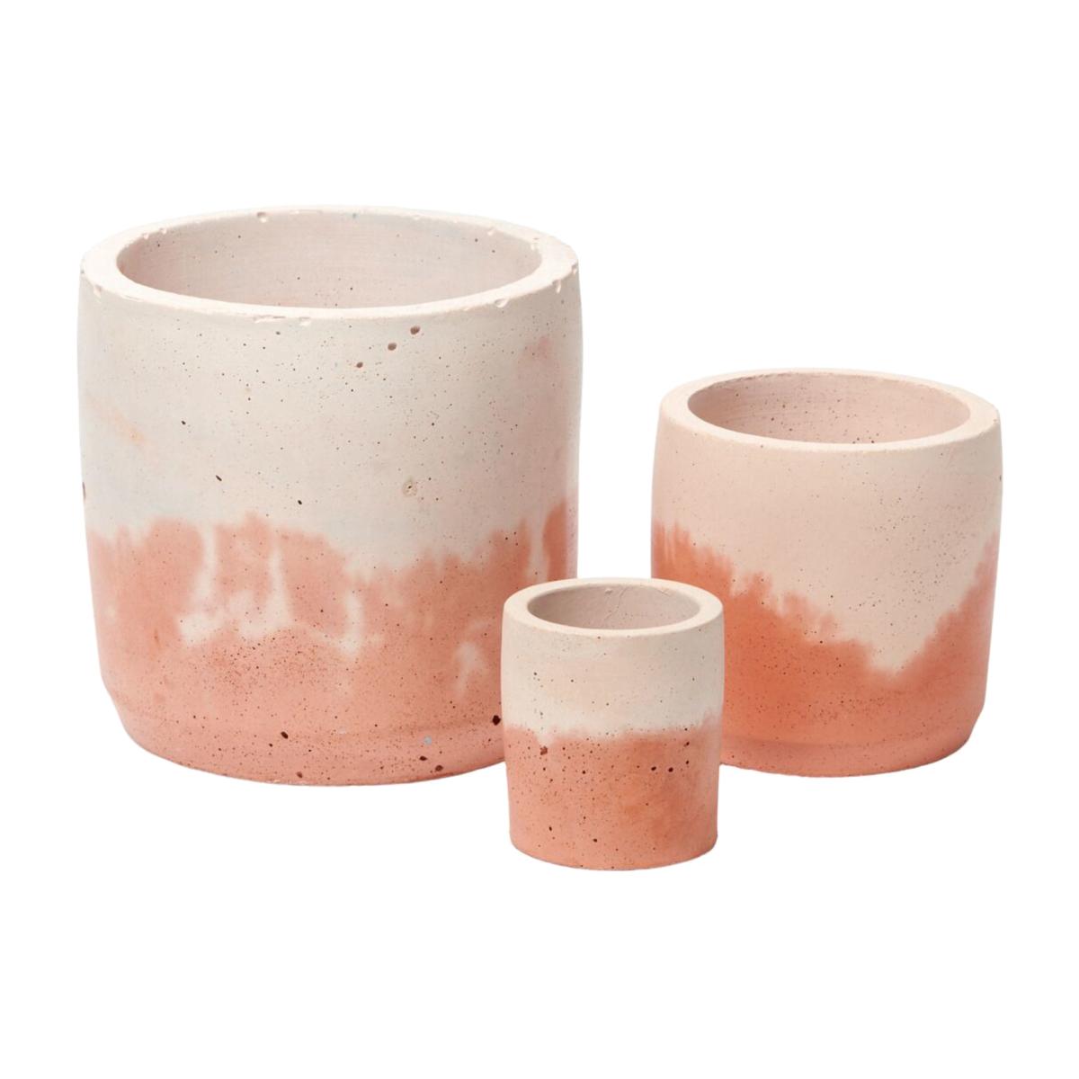 Our Concrete Pot Set will make the perfect gift for plant-lovers everywhere! This set of three pots (small, medium, and large cylinders) is both sturdy and stylish - and what better way to spruce up your space than with this rock-solid trio? Perfect for plants or storage. Each concrete pot is handcrafted in coloured concrete in our London studio. The sealed finish makes this product suitable for indoor and outdoor use. Due to concrete being a handmade and natural product, the images should be used as a guide only, as colour and distribution variations may occur.