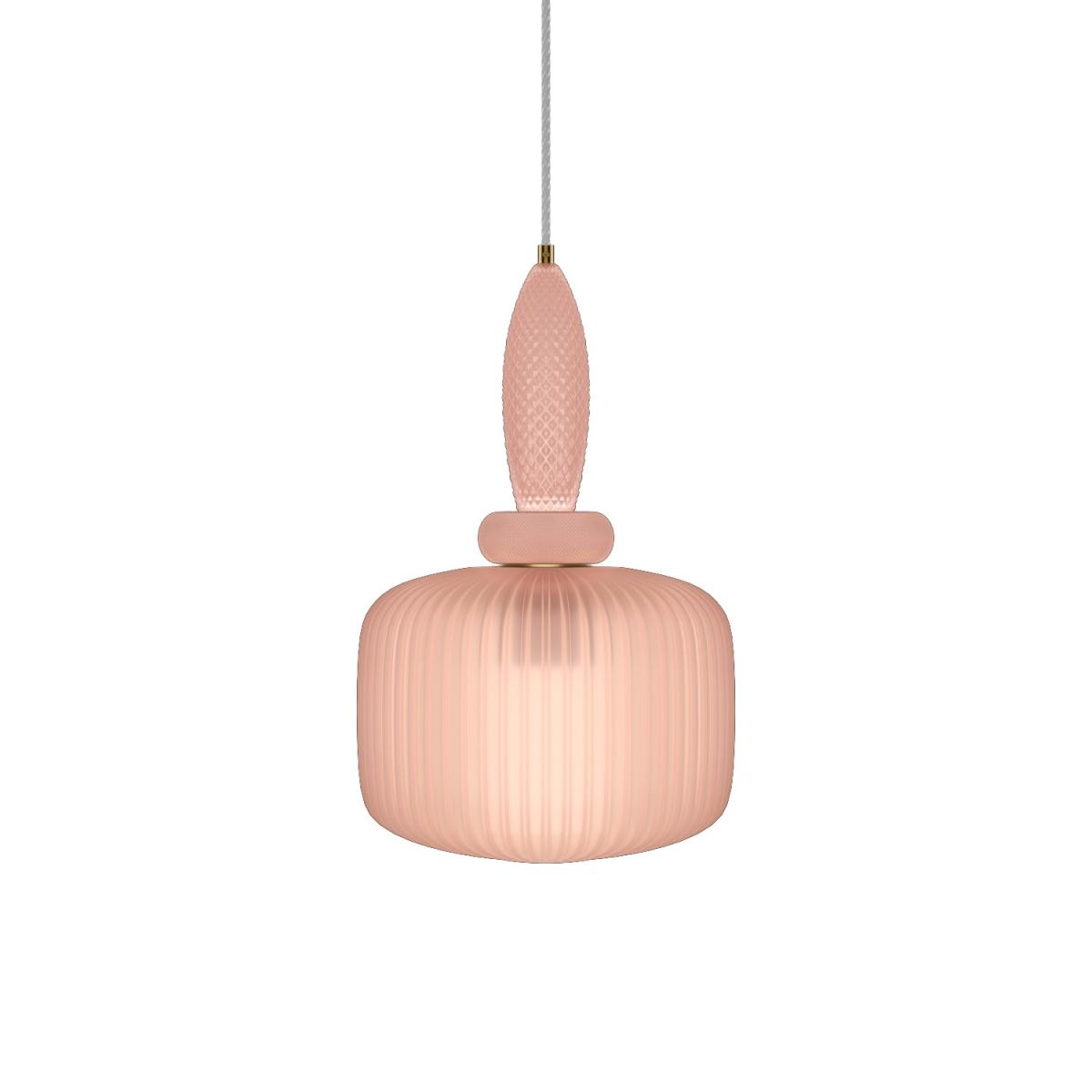 Pink Ribbed Smoked Glass Pendant Ceiling Light - Biella