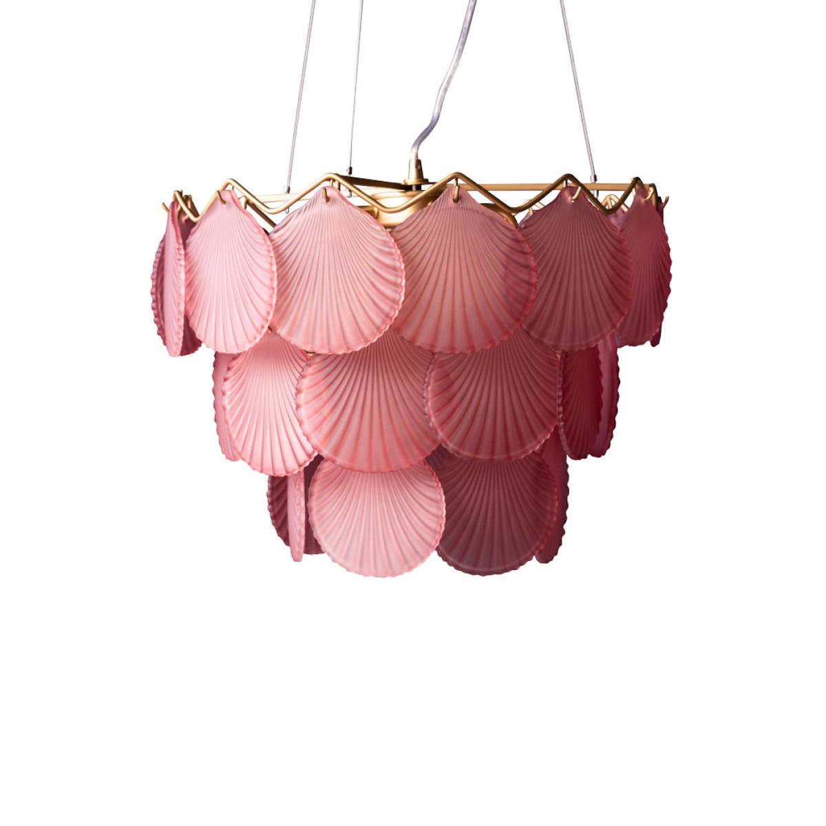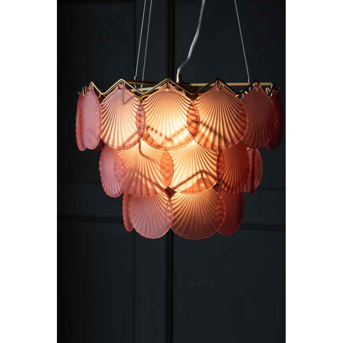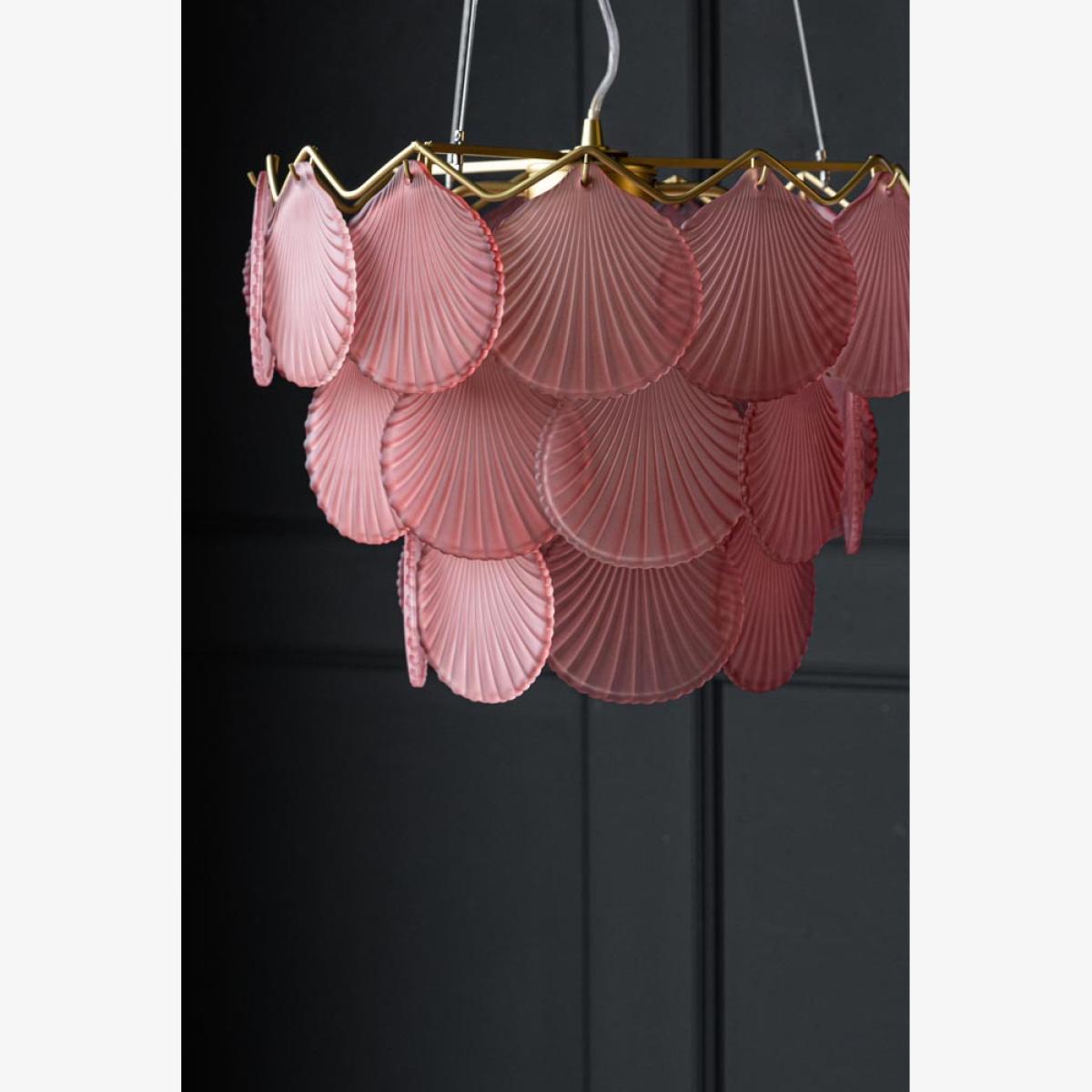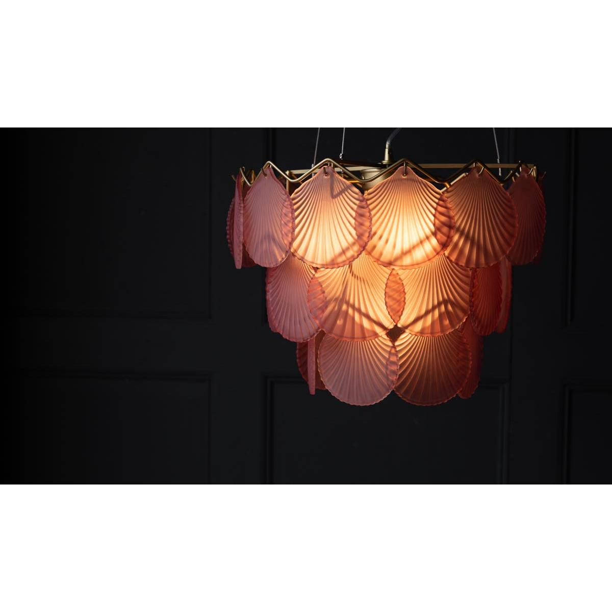 About The Pink Shell Ceiling Light Jane and Lucy are always searching for fabulous ceiling lights and were thrilled to discover the Pink Glass Shell Ceiling Light. It's hard to find lights that look as good switched off as they do when switched on but this design is the perfect example, combining drama and atmosphere to beautiful effect. The pink shell ceiling light reveals pretty pale pink glass discs designed in the style of a shell and pairs this with a classic brass finish chandelier frame. Please note that the pink shell chandelier requires five 3W Max G9 capsule bulbs and measures 40cm in diameter. Why We Think You’ll Love The Pink Shell Pendant Light This glamorous pink and gold pendant light takes inspiration from nature and has a vintage feel that makes it the perfect modern heirloom piece. Introducing soft light, the pendant can be used as a main chandelier light in the room and works well with a dimmer switch for a subtle glow and beautiful shell-shaped reflections. How To Style The Pink Shell Glass Chandelier “The stunning pink shell ceiling light has a fabulous vintage feel that is ideal for the hallway, bedroom or a dressing room. I love the idea of styling this light as a fantastic showstopper piece in a white room to really steal the show and command attention. Alternatively, the shell chandelier would look wonderfully decadent in a feminine floral wallpapered room to add a billowy glow when the light is switched on!" Lucy St George