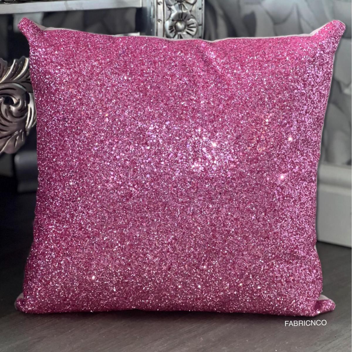 In this listing you will find one of our gorgeous pink full glitter cushions. These come filled and have a reversible velvet back so can be styled two ways. These are a very beautiful show piece for your home and will make a statement wherever they are styled. Handmade in the UK to the highest standard.