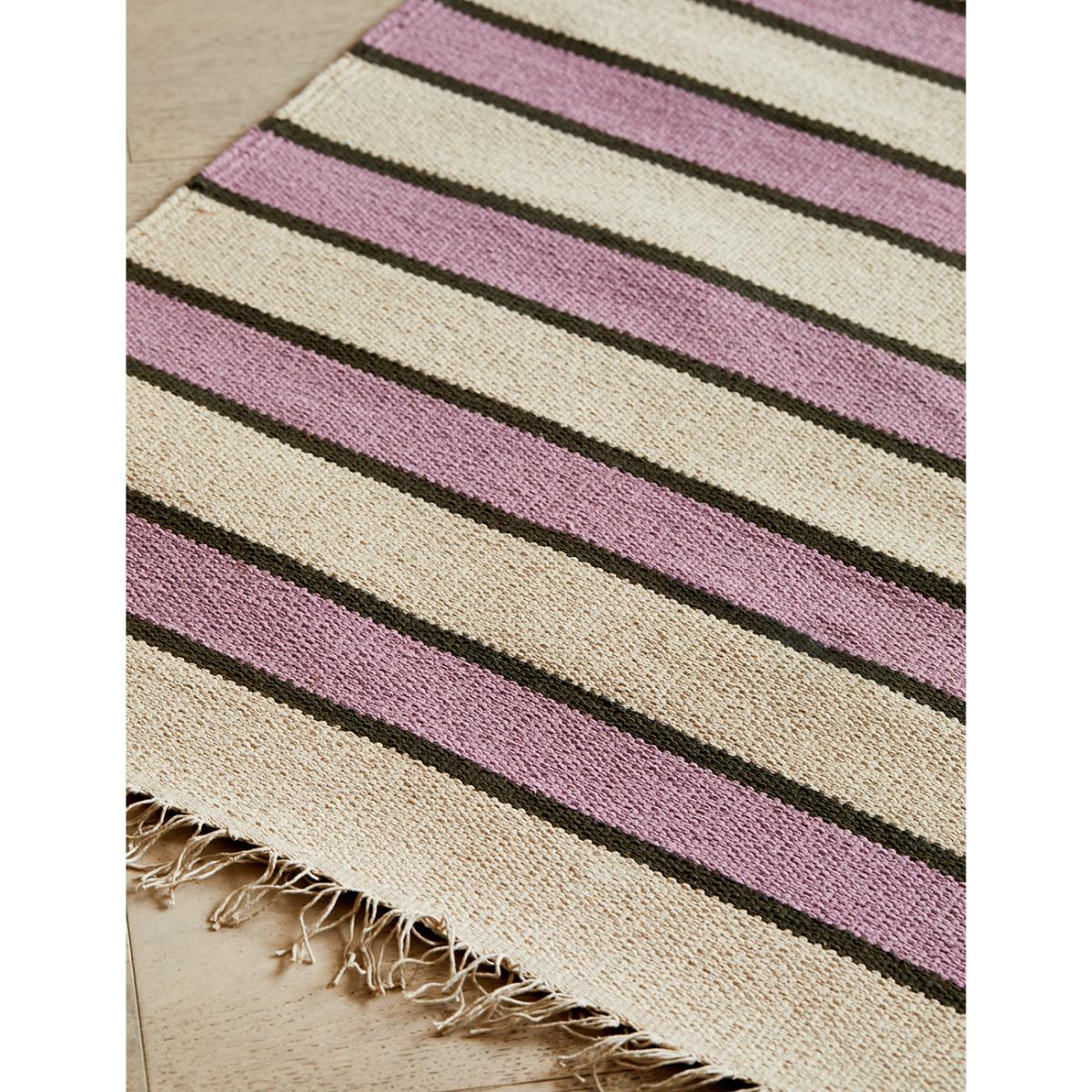 Make your house a home with the Pink Striped Cotton Runner Rug. This statement rug features pink, cream and black stripes with a frilled-edge design, perfect for adding depth and texture to your space. Whether you choose to style this runner in your hallway, living room or bedroom, its hardwearing material will last for years to come. This rug is also available in a blue colourway.