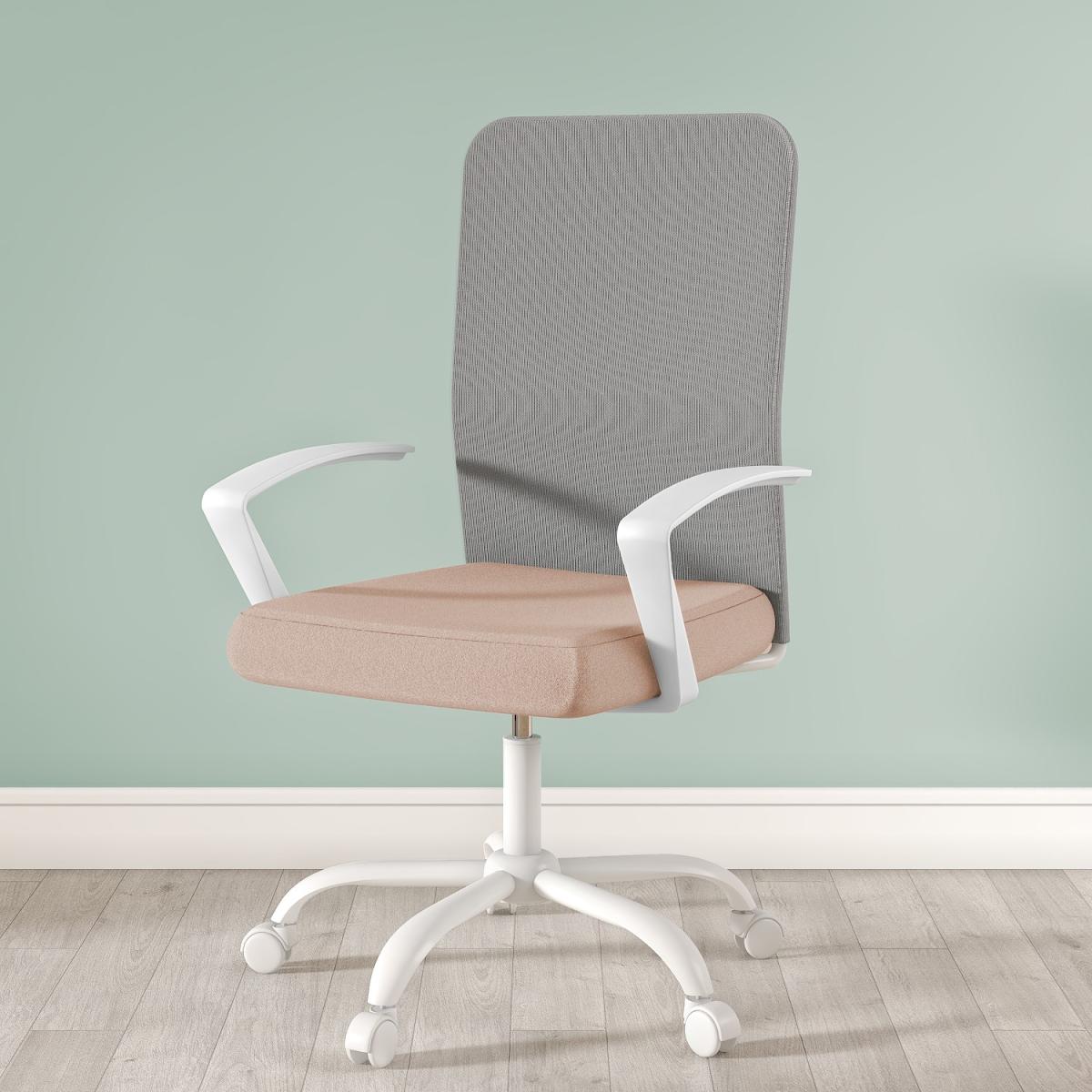 I love this pink swivel office chair for adding a pop of colour and a modern touch to any workspace. Its mesh back provides breathability, making it comfortable for long periods at the desk, while the soft beige seat keeps the look neutral and understated. It works particularly well in contemporary or minimalist interiors, complementing light woods, whites, and pastel shades. For styling tips, consider pairing it with a sleek glass or white desk for a clean aesthetic, or offsetting it with colourful accessories like cushions or desk organisers to keep the space lively. Its versatility means it can also sit comfortably in a home office or creative studio, adding both style and practical support.