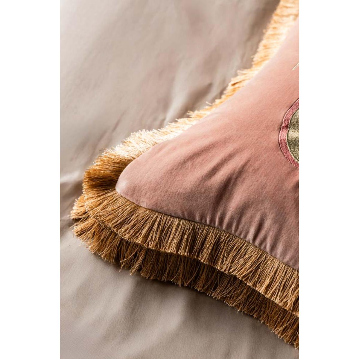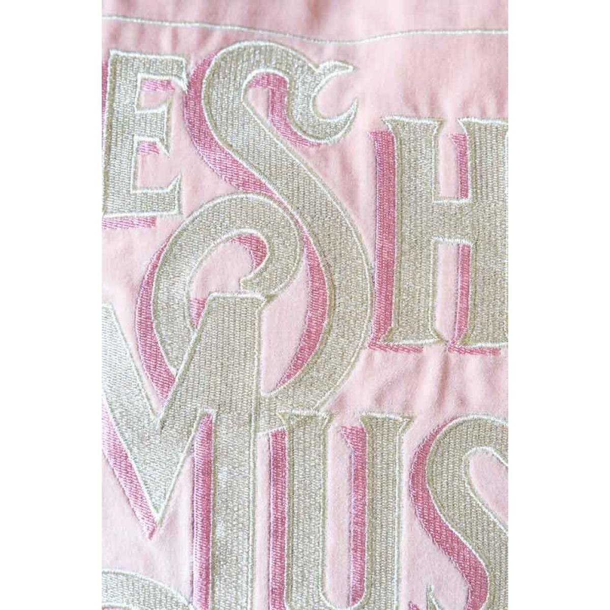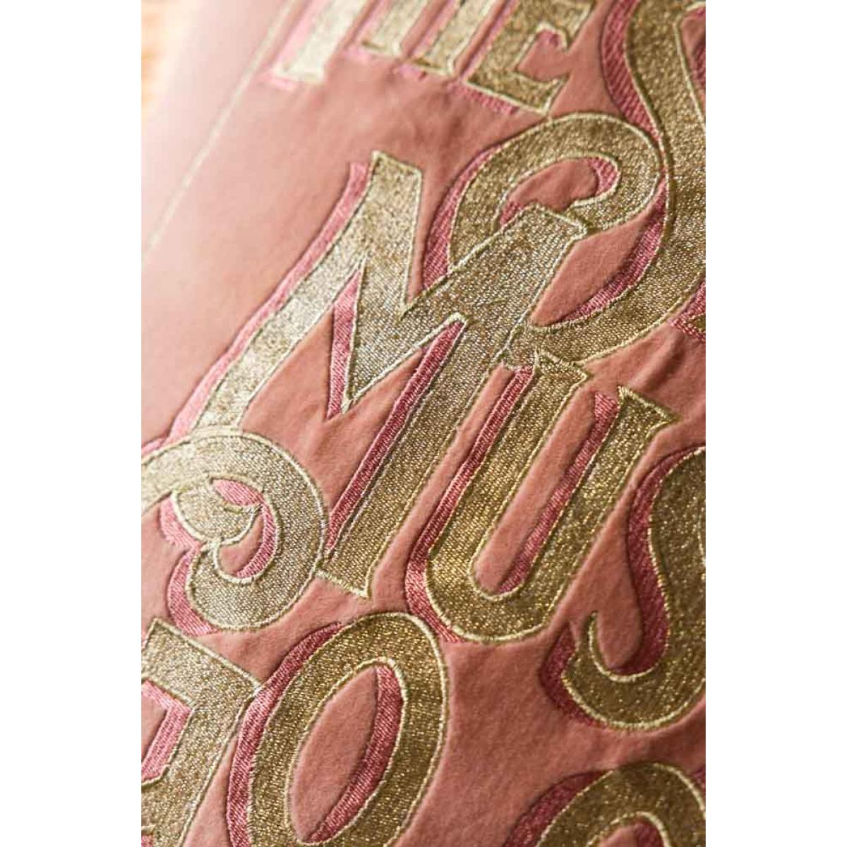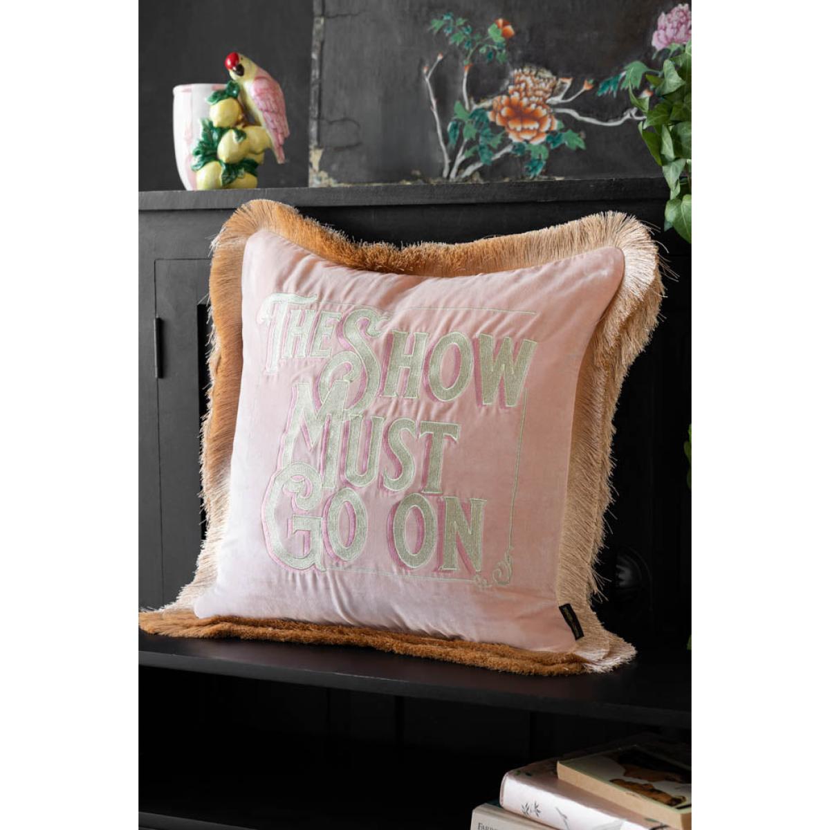 Bring a little theatrical flair to your space with this utterly fabulous velvet fringed cushion that’s here to steal the spotlight. Made from dreamy pale pink velvet and finished with glamorous gold tasselled edges, this soft sofa cushion is a standing ovation in cushion form. Front and centre, in a gloriously glitzy gold embroidered font, it reads “The Show Must Go On” – because even on the dullest days, a little sparkle and drama can go a long way. Whether you’re styling it on your sofa or bed, it’s guaranteed to bring joy, sass, and a whole lot of stage presence to your home. Perfect for maximalists, dreamers, and anyone who lives life with a touch of flair. Curtains up, cushions fluffed, let's go! - Gold Velvet Double-Fringed Show Must Go On Embroidered Cushion - Measures: W50cm x H50cm - Materials: Polyvelvet - Duck feather inner included - Wipe clean with a dry cloth only